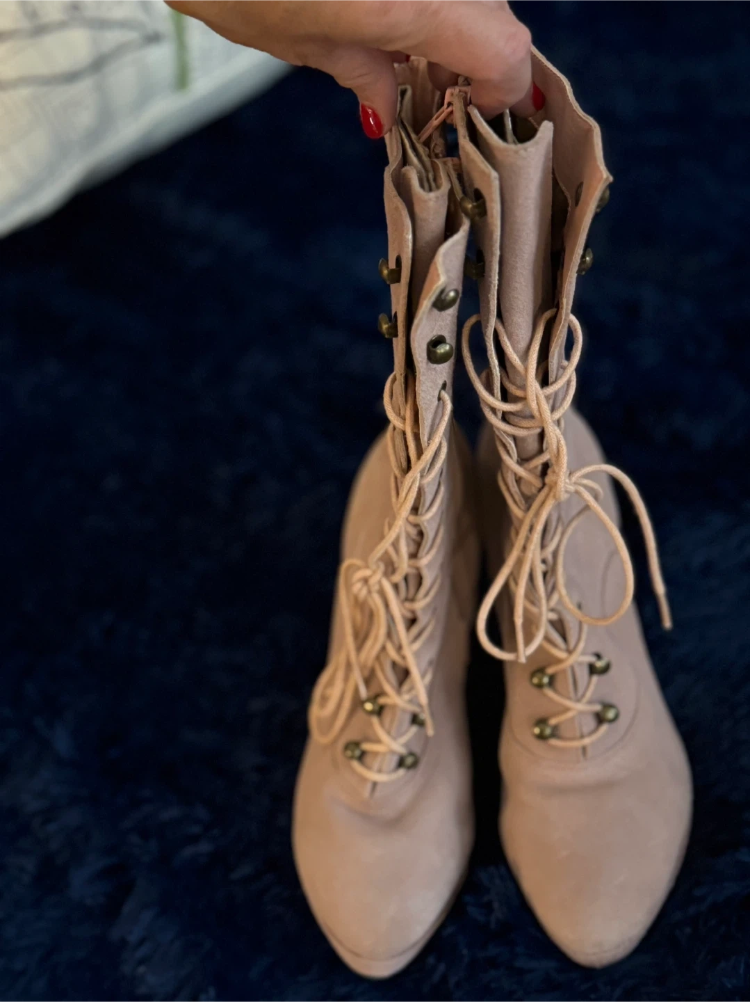 248Selling a pair of cute lace-up heel boots! They are a size 39 and come in a lovely dusty rose colour. Perfect for adding a bit of style to any outfit