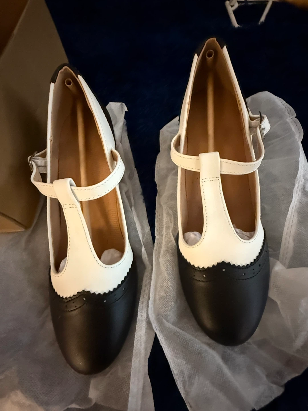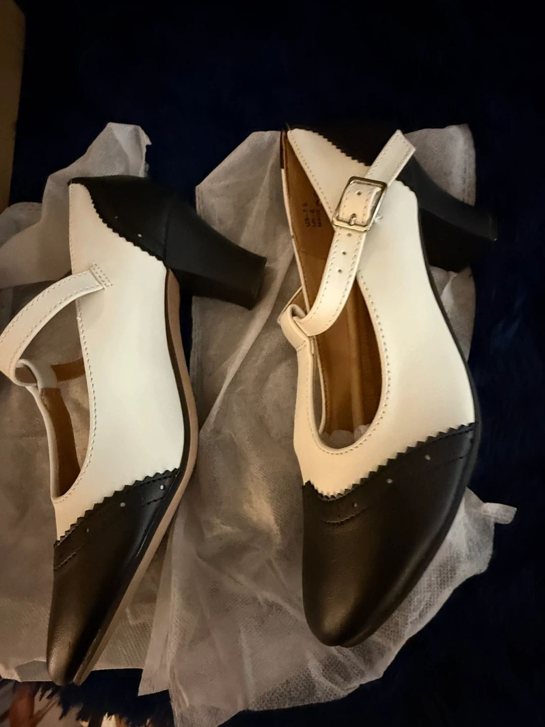 248Selling a pair of two-tone Mary Jane heels in black and white. They come with the original box. Size 7.5 brand new never worn.