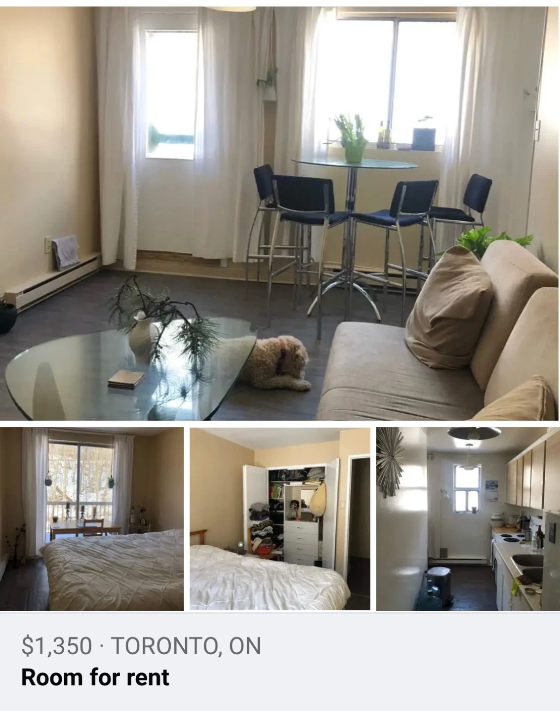 Shared accommodations. Room available. $1350. Rosedale location amazing ravine view. One person only. Smoke and drug free home. Thank you.