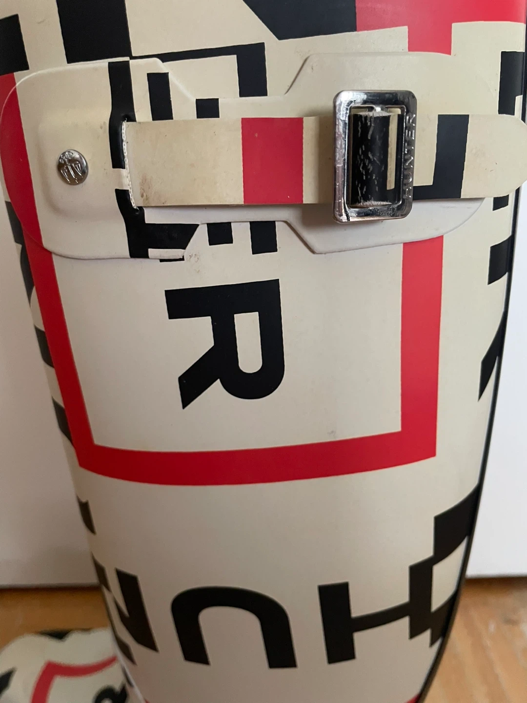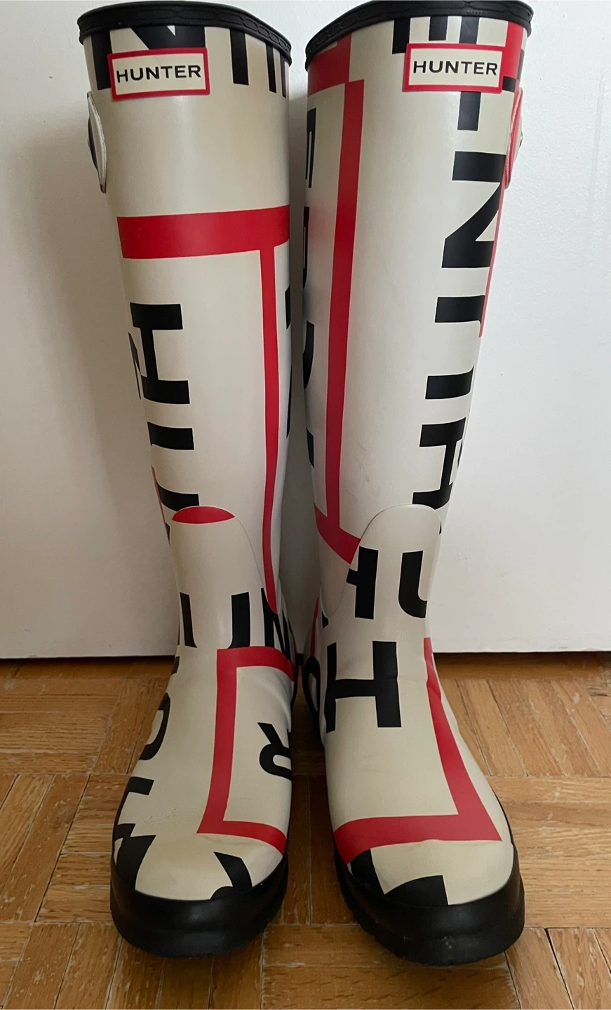 Hunter tall rain boots, limited edition graphic logo. Like new, Size 9. Retails for $200.00.