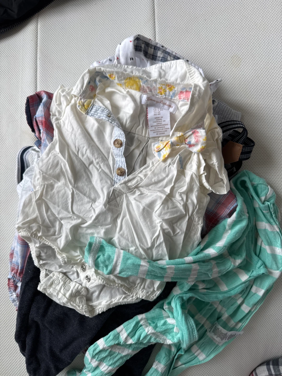 Selling a bundle of gently used baby clothes! There are various sizes and brands included, perfect for stocking up your little one's wardrobe. All items are in good condition with no major flaws.
