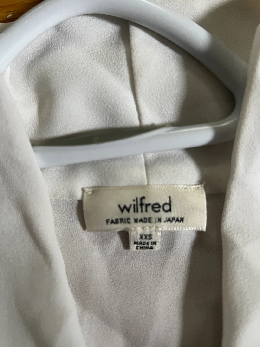 Aritzia Wilfred sleeveless blouse in white, size XXS. It's in great condition and made with fabric from Japan, assembled in China. Perfect for a light and airy look! Loose fitting and can fit up to a size S.