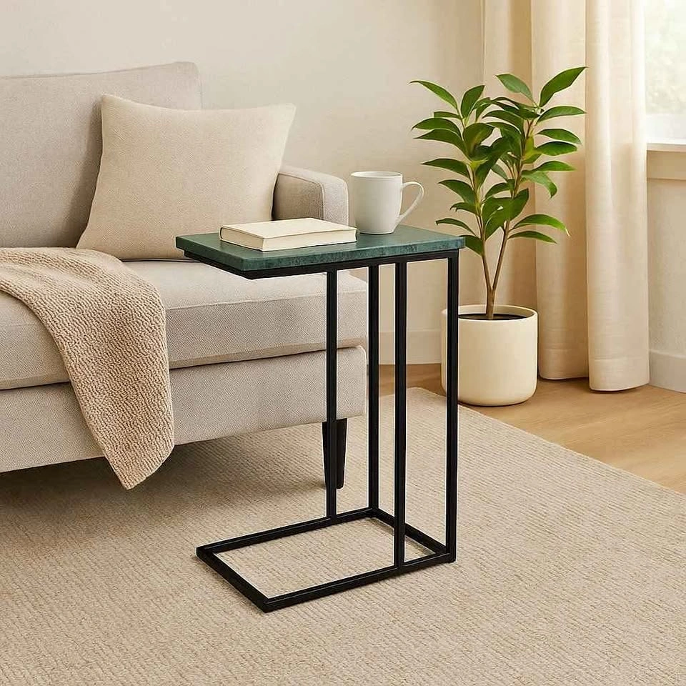 Marble C-Shaped Table with Metal Frame - 24" H