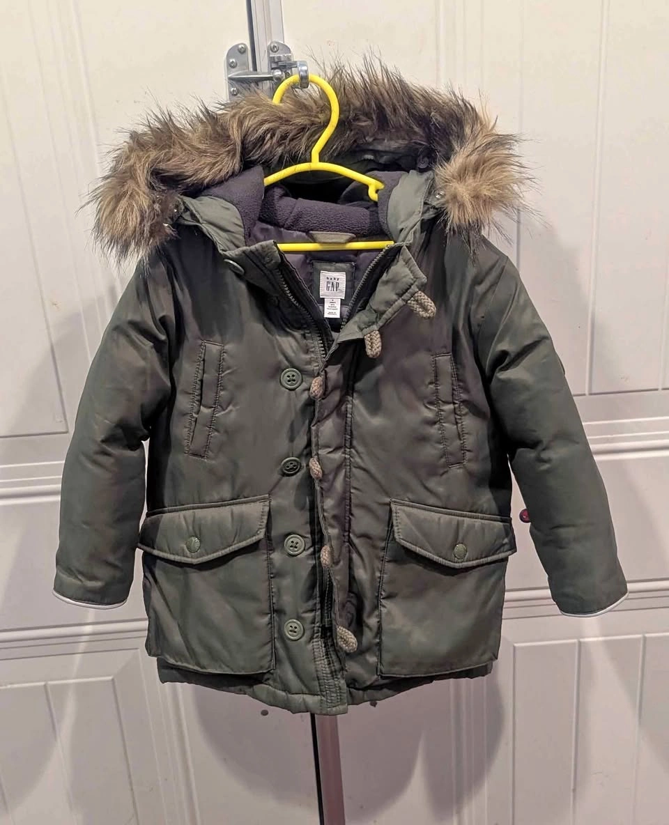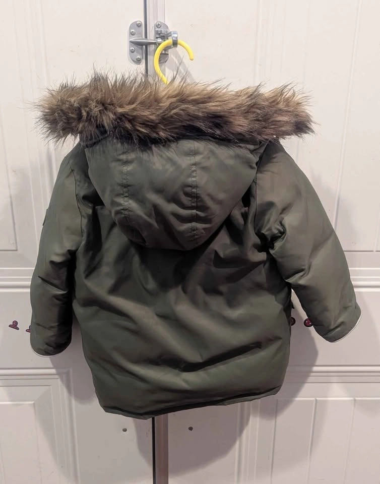 Down-filled winter jacket. Gently used by 1 child. The fur around the hood is removable (never worn with it).