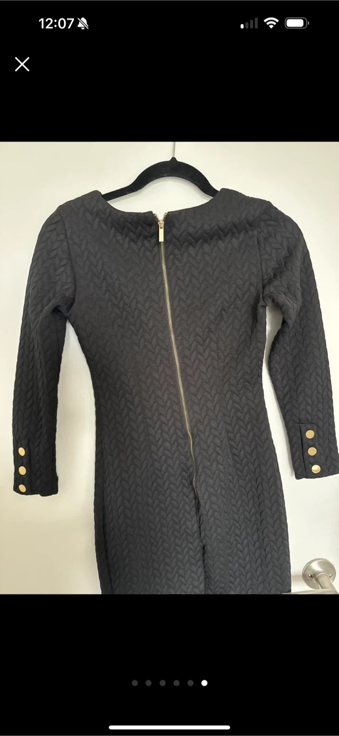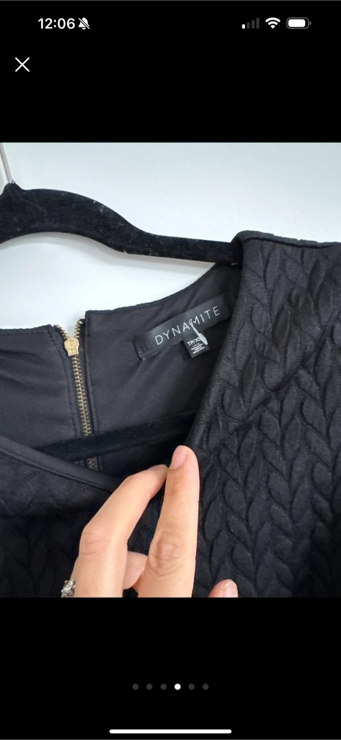 Selling a stylish black long sleeve dress from Dynamite in size XS. It's in great condition and features a unique textured pattern. Perfect for a night out or a special occasion!