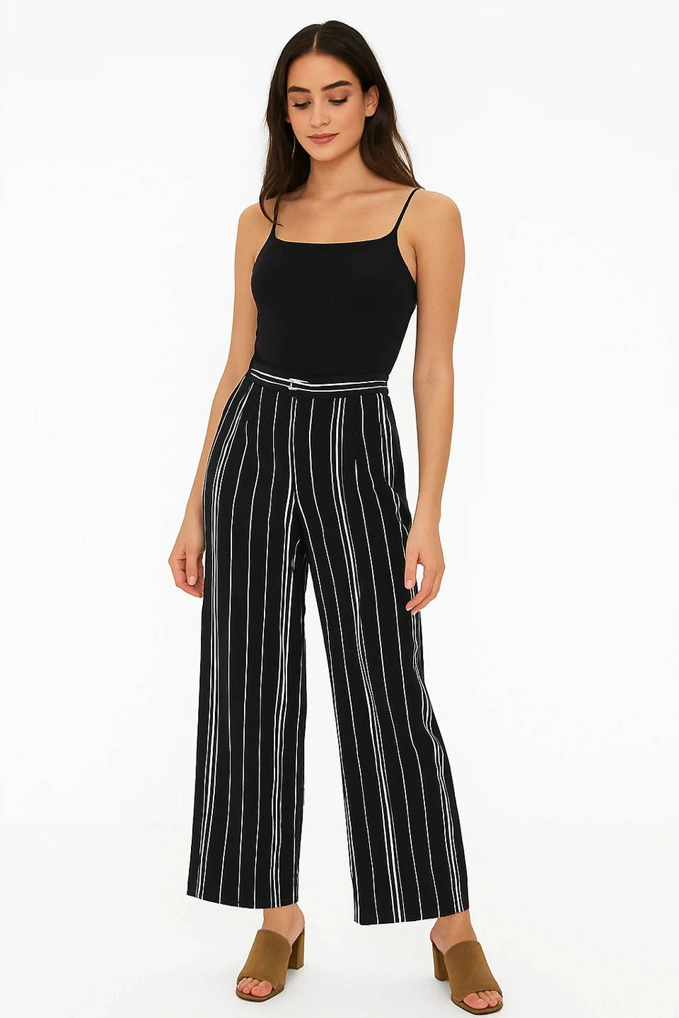 Selling a pair of H&M wide leg pants. They feature a stylish black and white stripe pattern and are a size 32. Perfect for a chic and comfortable look!