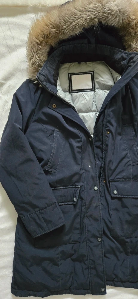Here's a Calvin Klein down parka in great condition! It's a warm choice for those chilly Canadian days. The jacket features a faux fur-trimmed hood and a comfortable quilted lining.