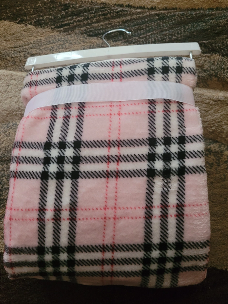 Brand new Jesse + Lulu plush blanket with security toy set! The blanket is a soft pink with a plaid pattern and features an adorable teddy bear attached. It measures 30" x 36" / 76cm x 91cm and is perfect for keeping your little one cozy and comforted