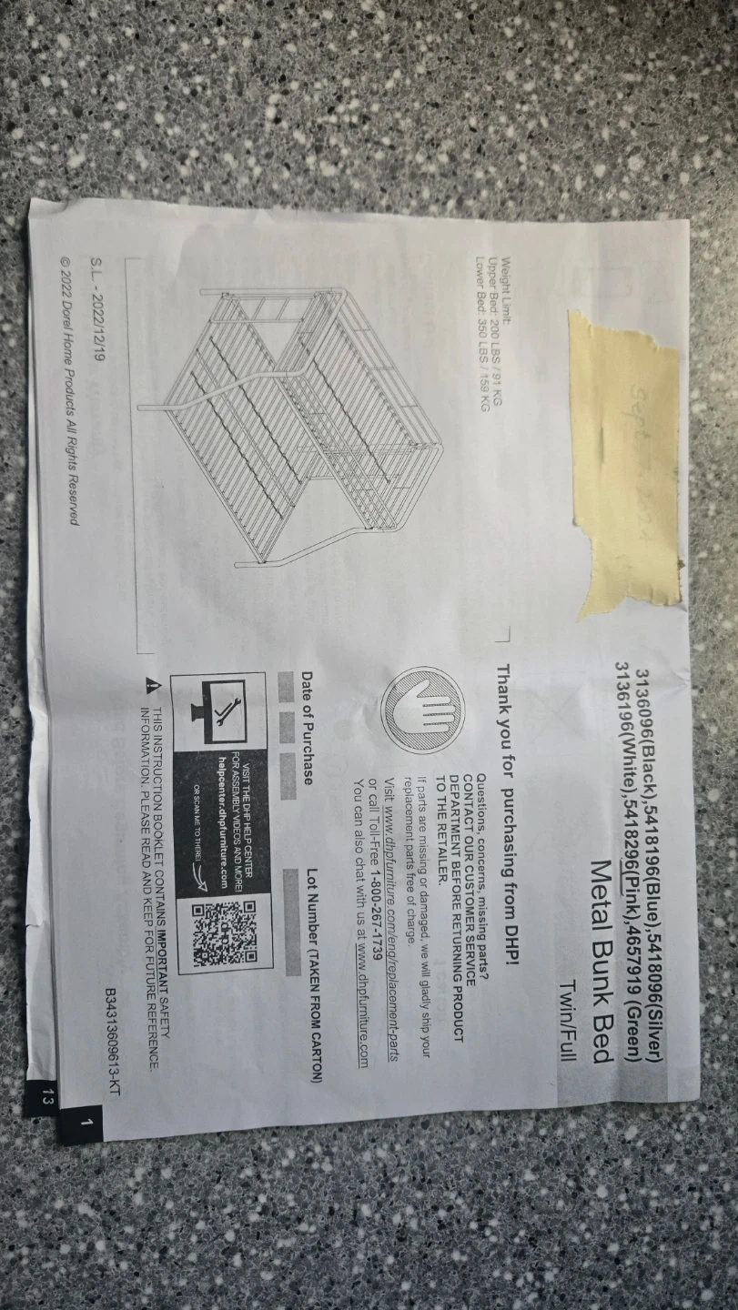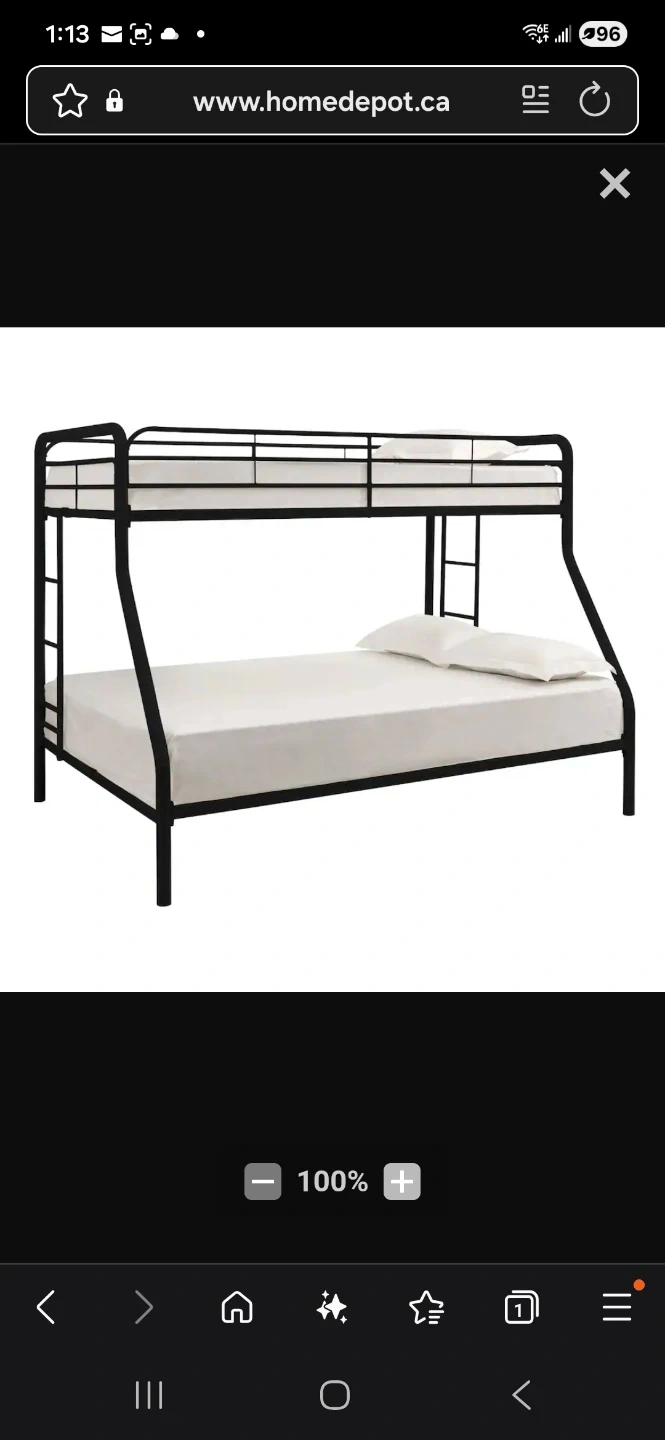 Selling a DHP Metal Bunk Bed in black, size twin over full. It's in great condition and ready for a new home. Perfect for kids or guests! L=78", W=56.5", H=61.5"