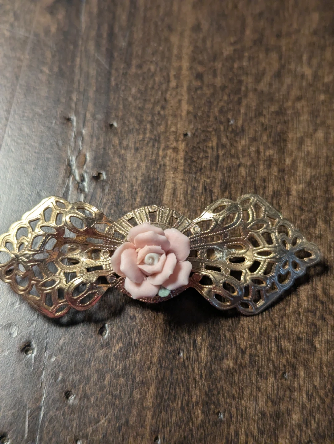 This is a lovely vintage gold-tone brooch featuring a delicate floral design. It would be a great addition to any outfit or collection! The brooch is in good condition and ready to wear