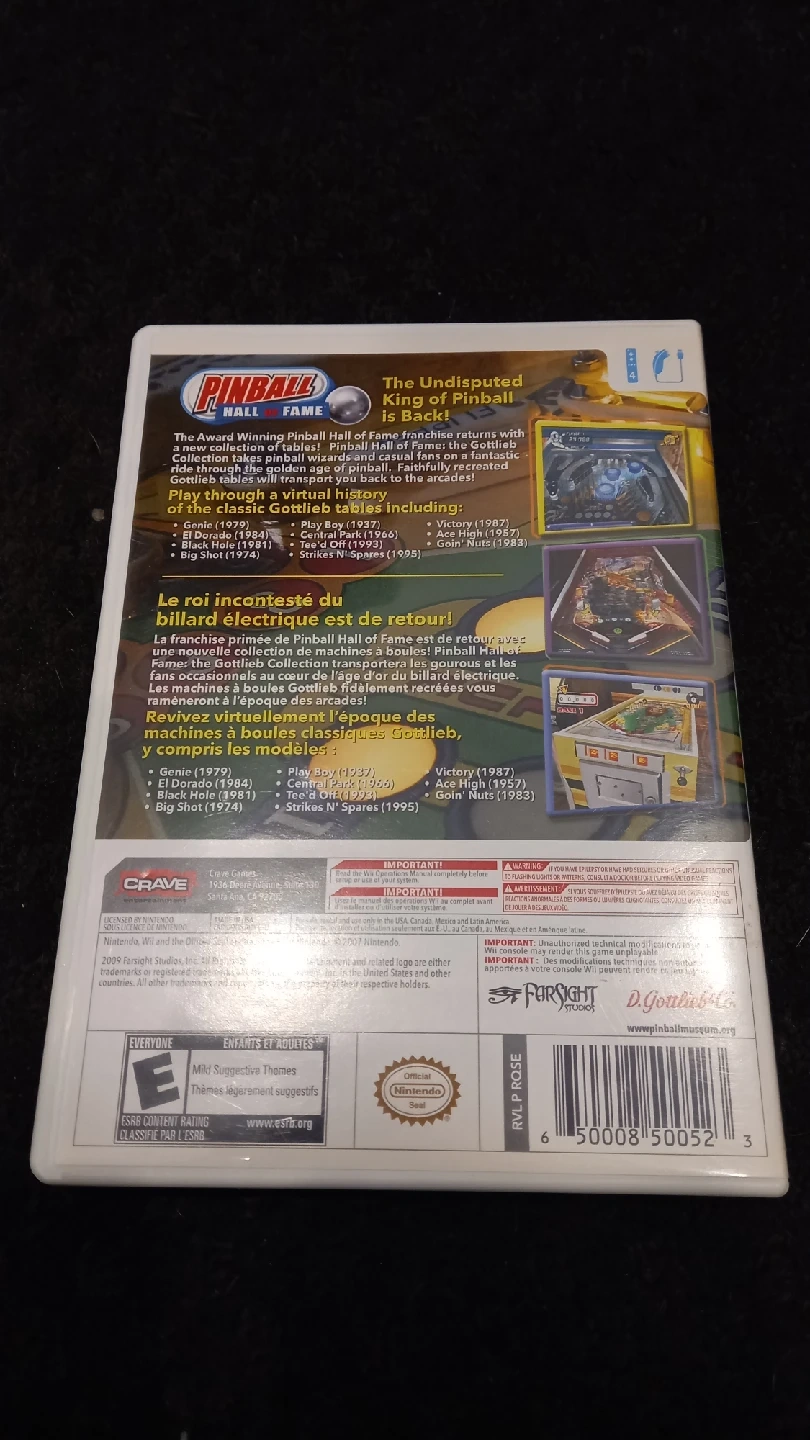 Selling a copy of Pinball Hall of Fame: The Gottlieb Collection for the Nintendo Wii. It's in great shape and ready for a new home! Enjoy playing through a virtual history of pinball, including classics like Genie (1979) and Victory (1987)