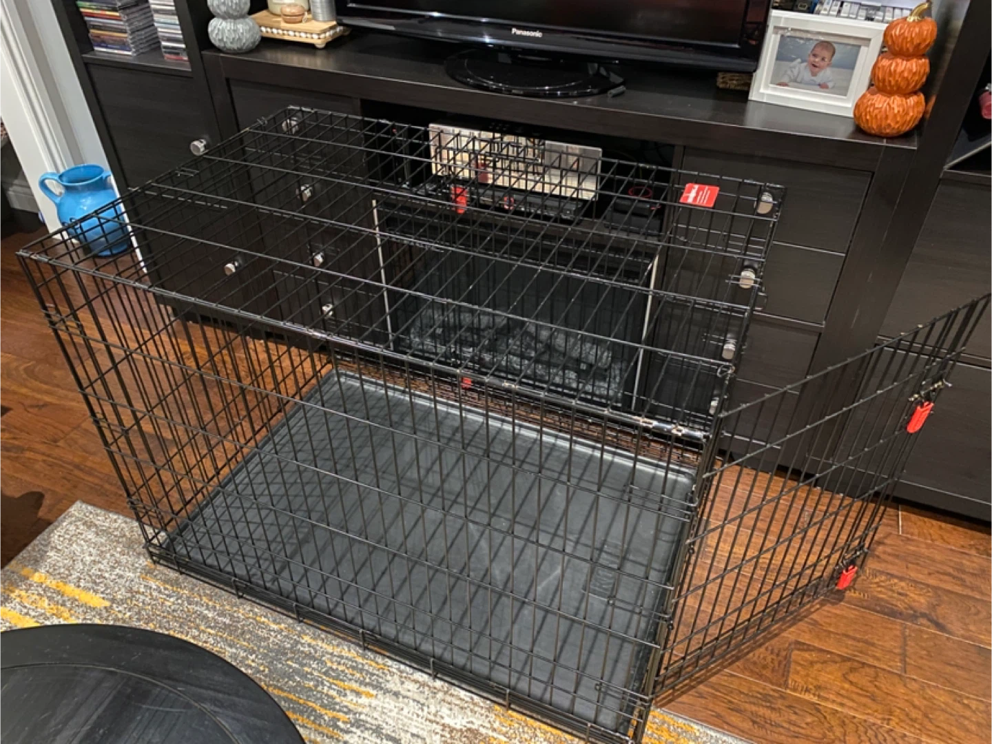 Selling a black wire dog crate! It's in great shape and ready for a new home. Perfect for training or providing a safe space for your furry friend. Double doors for ease of use. Measures 42-1/4”l x 28-1/4”w x 30”h. Can be easily folded for transportation. Pick up at Weston and Eglinton.