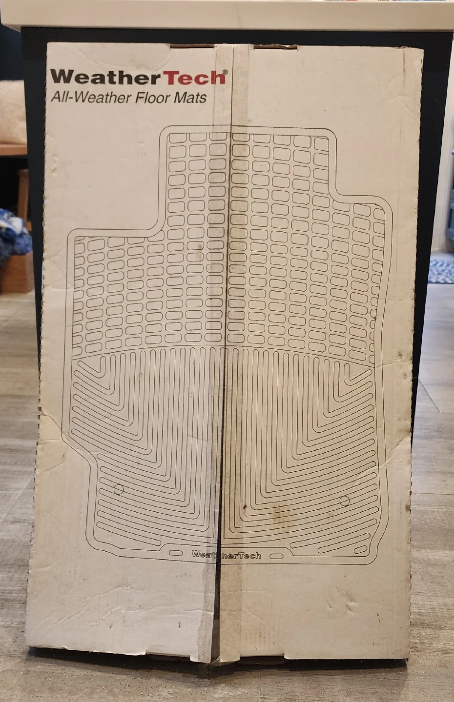 32Selling 4 piece set of WeatherTech all-weather floor mats, model number 11AVMSB, brand new still in original box unopened. Universal fit for a passenger car. Front mats: 5/8" thick, 19" wide by 27" long (Can be trimmed to 16" wide by 24" long) 2-Piece Rear mats: 5/8" thick, 18.5" wide by 17" long (Can be trimmed to 16.5" wide by 15" long) Here is link to product for more details: https://a.co/d/9eWHlEE