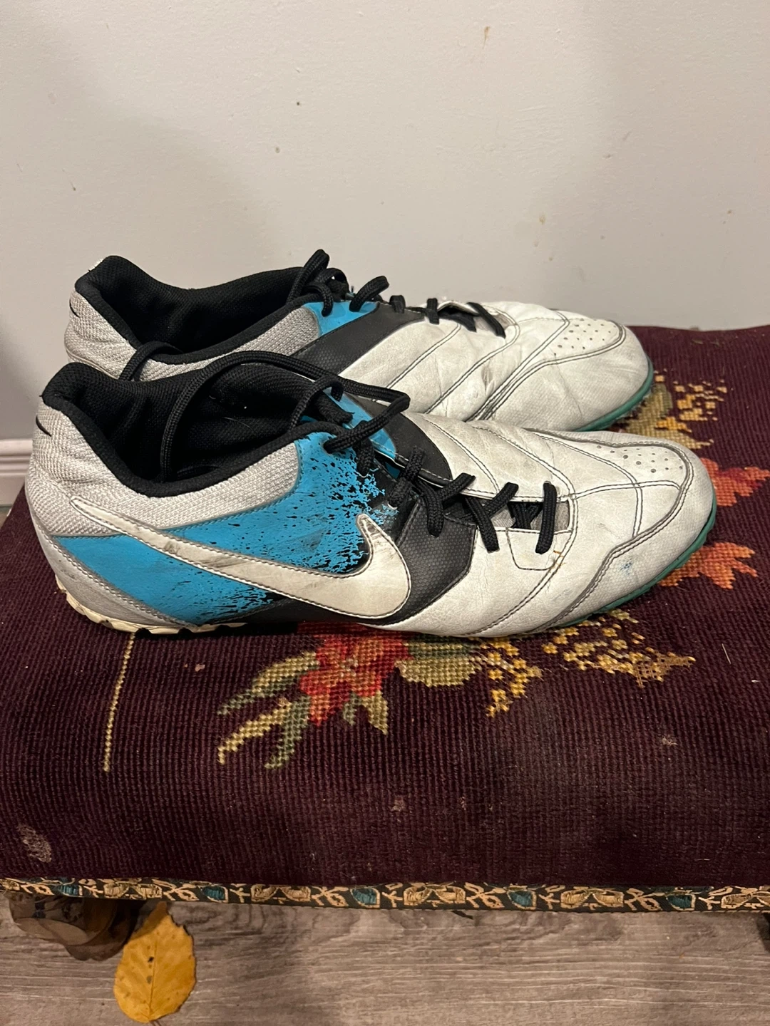 Buy & SellNike Soccer CleatsNike Soccer Cleats$20Selling a pair of used Nike soccer cleats. They're white, black, and blue. They're a bit worn but still have some life left in them!ConditionGood0 chats·0 favorites·2 viewsSELLERverifiedMaggie SommersLong Branch32121 reviewsWHERE TO MEETCheck Location