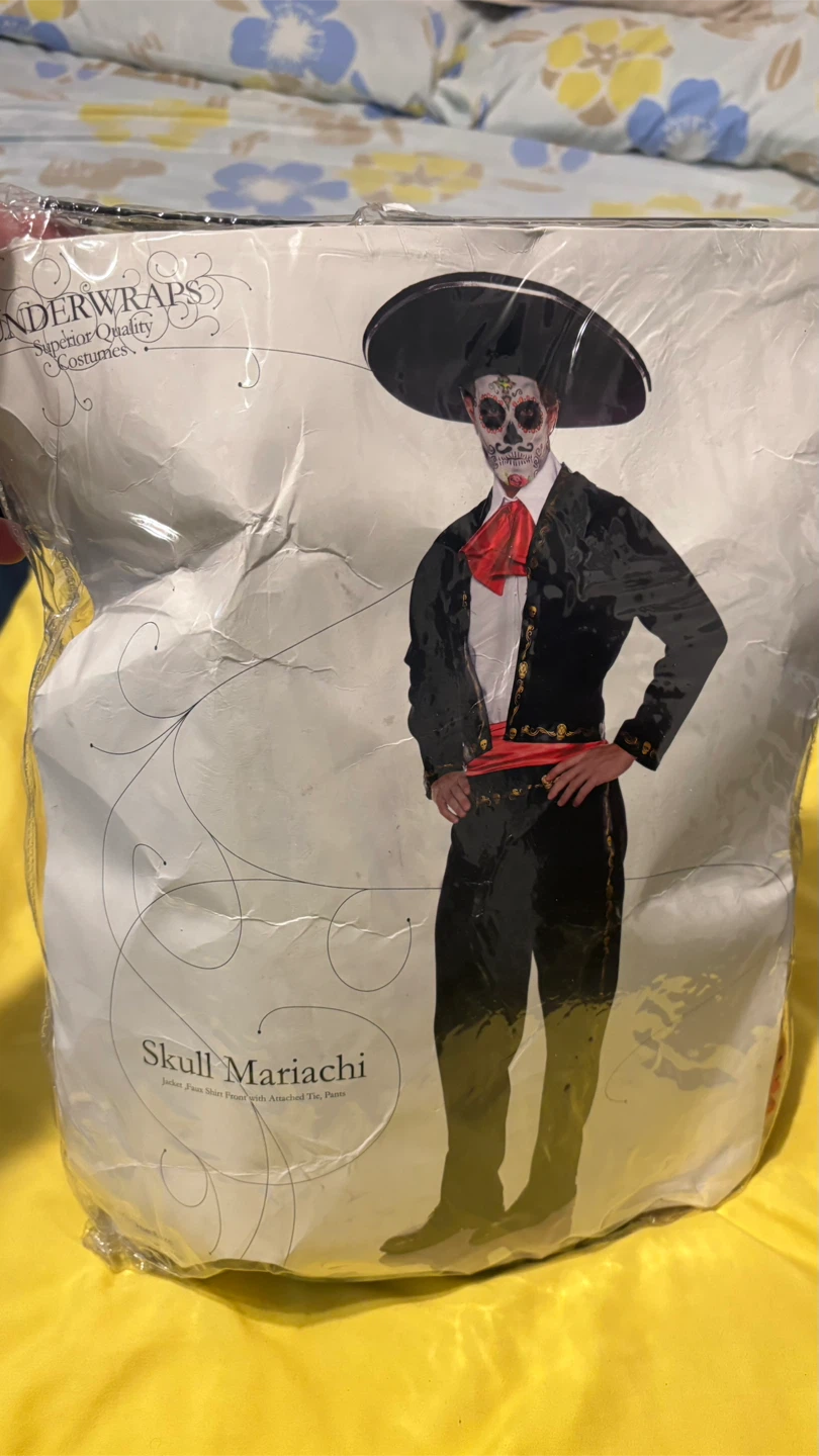 Selling a new, in-package Underwraps Skull Mariachi costume! This one-size costume includes a jacket, faux shirt front with attached tie, and pants.