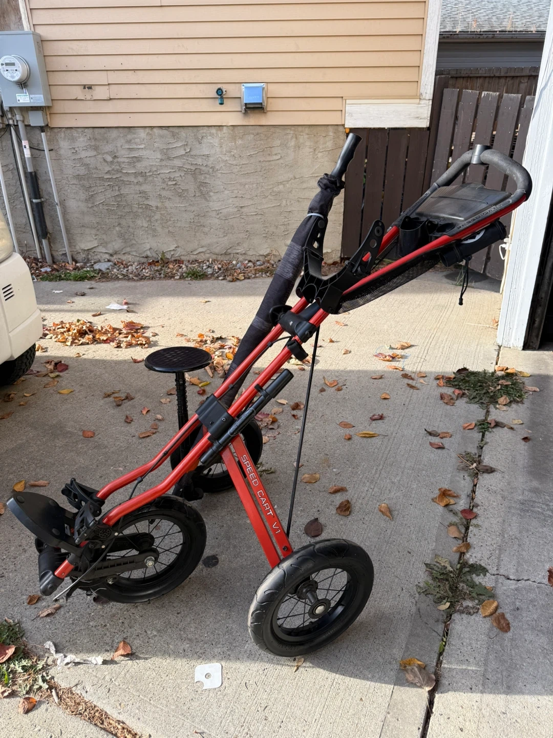 Selling a Sun Mountain Speed Cart V1 golf cart in good condition! It comes with the seat and umbrealla/holder and folds up nicely for easy storage and transport. In good condition