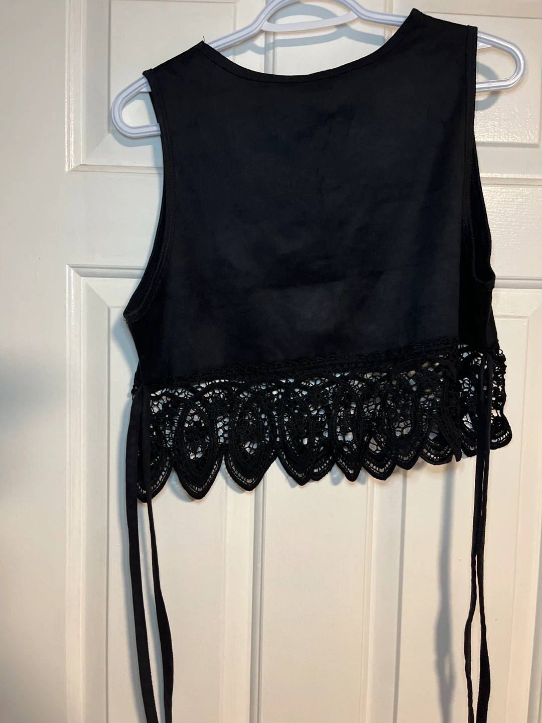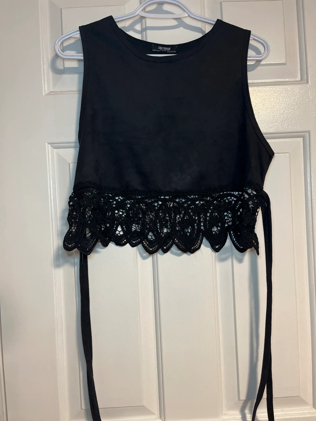49Selling a Zara Trafaluc crop top in black with a lace trim!