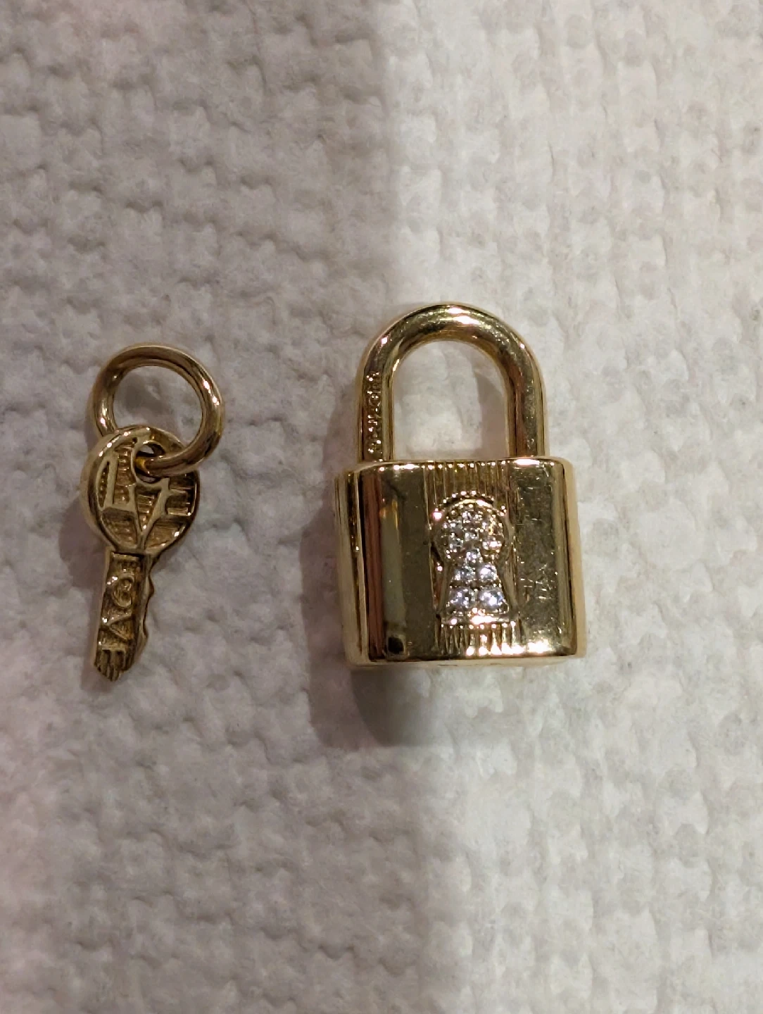 Authentic Pandora Lock and key 14 KT Gold plated over sterling silver dangle charm.