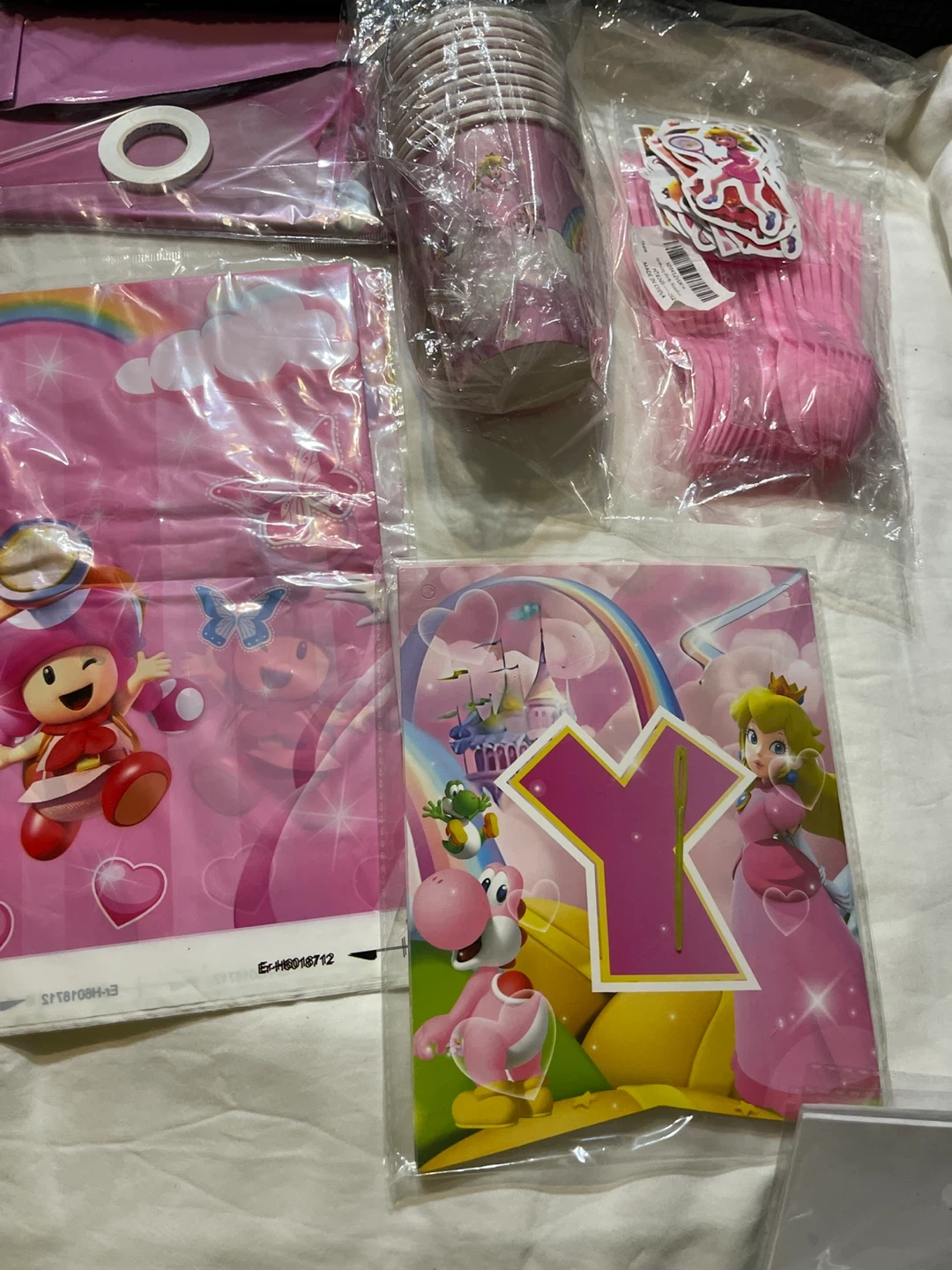 139Brand new Princess Peach themed birthday party supplies! Includes a table cover, cups, plates, cutlery, and a banner, stickers all in a cute pink colour. Perfect for a little one's birthday party! Pick up at Islington avenue /401, bergamot I accept only cash . If you see the add it’s available