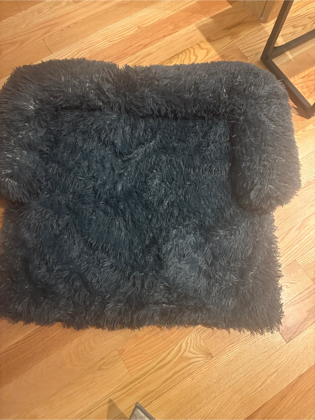 Selling a comfy, fluffy pet bed in a nice blue colour! It looks like it would be perfect for a small to medium-sized dog or cat who loves to snuggle up. The bed has a soft, plush texture that your furry friend will surely appreciate