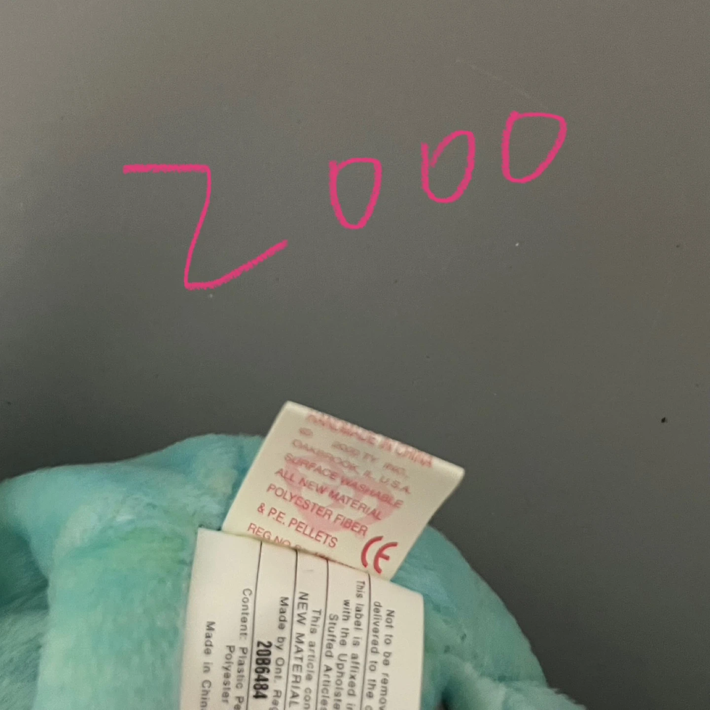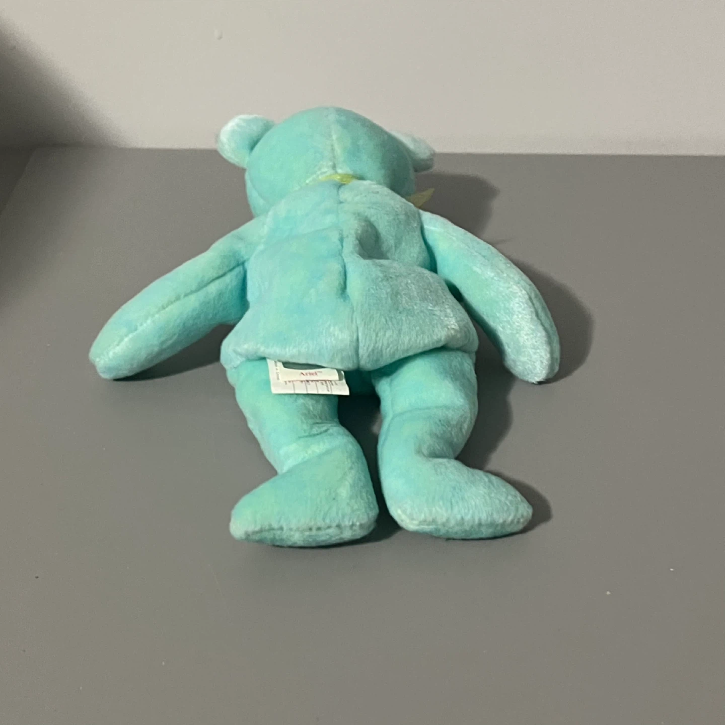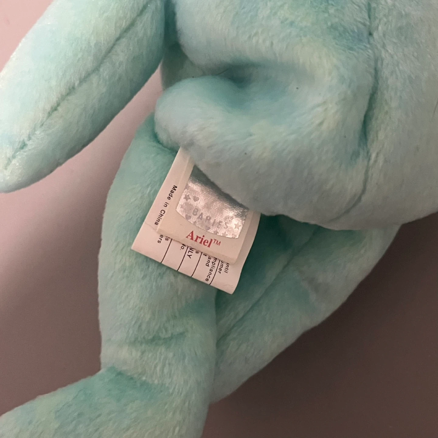 Selling a light blue Ty Beanie Baby bear named Ariel! It has a cute flower design on its chest and a ribbon around its neck. It's in great condition and ready for a new home