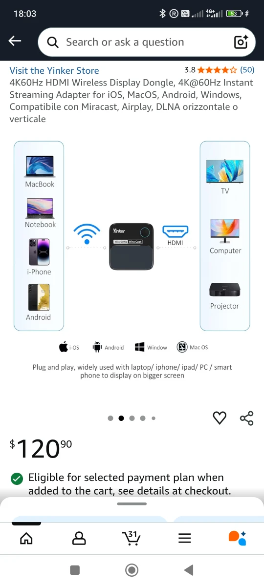 Selling a brand new Yinker 4K@60Hz HDMI Wireless Display Dongle. It's still in its original box and includes all components. It allows you to stream from iOS, MacOS, Android, Windows, and more to your TV or projector. Originally bought for $120.90
