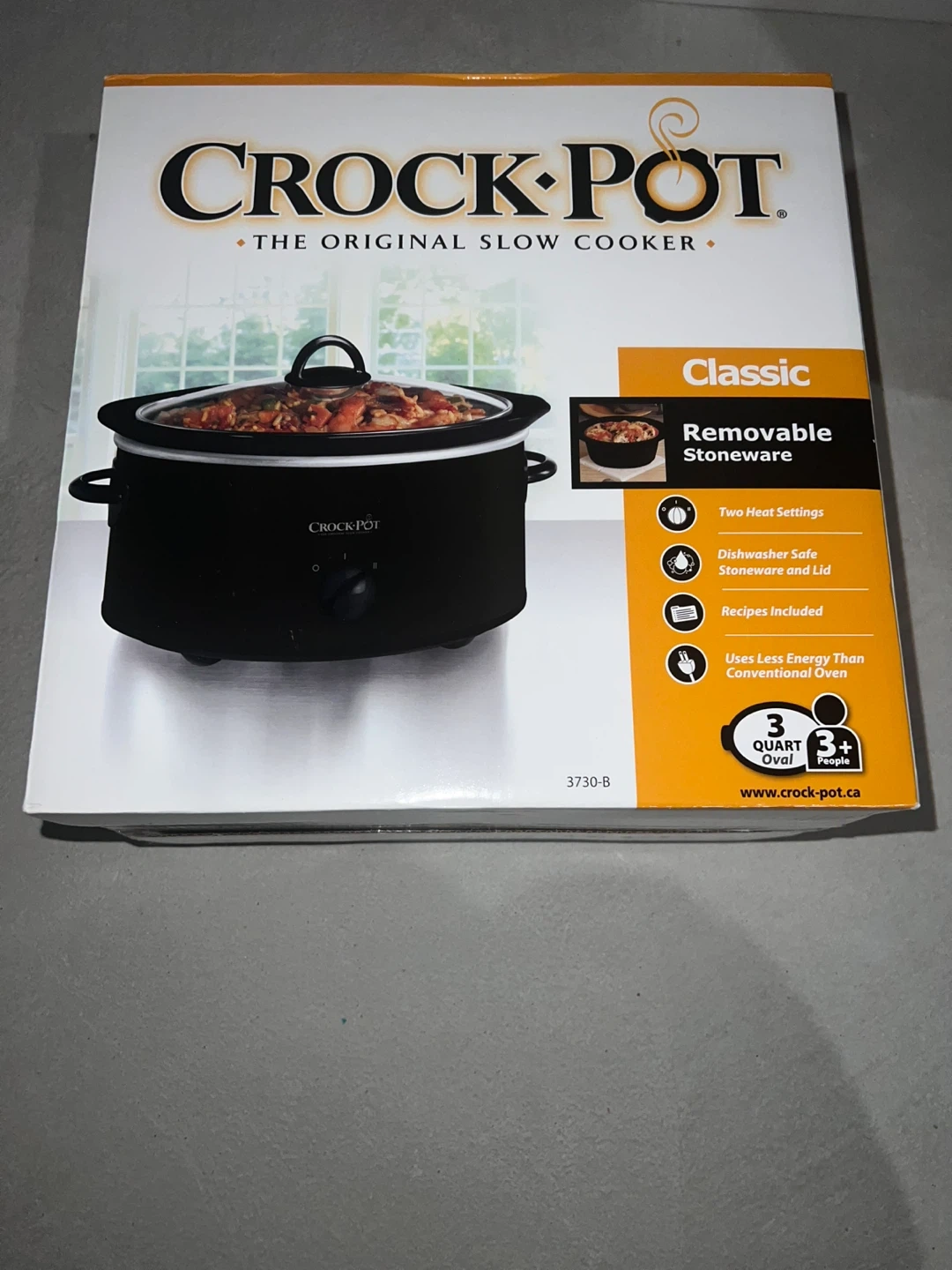 Selling a Crock-Pot Classic slow cooker! Its brand new and in box. It's the original slow cooker and features removable stoneware. It has two heat settings and is dishwasher safe (stoneware and lid). Recipes are included to get you started. It uses less energy than a conventional oven and is a 3-quart oval size. Originally priced $50 + tax.