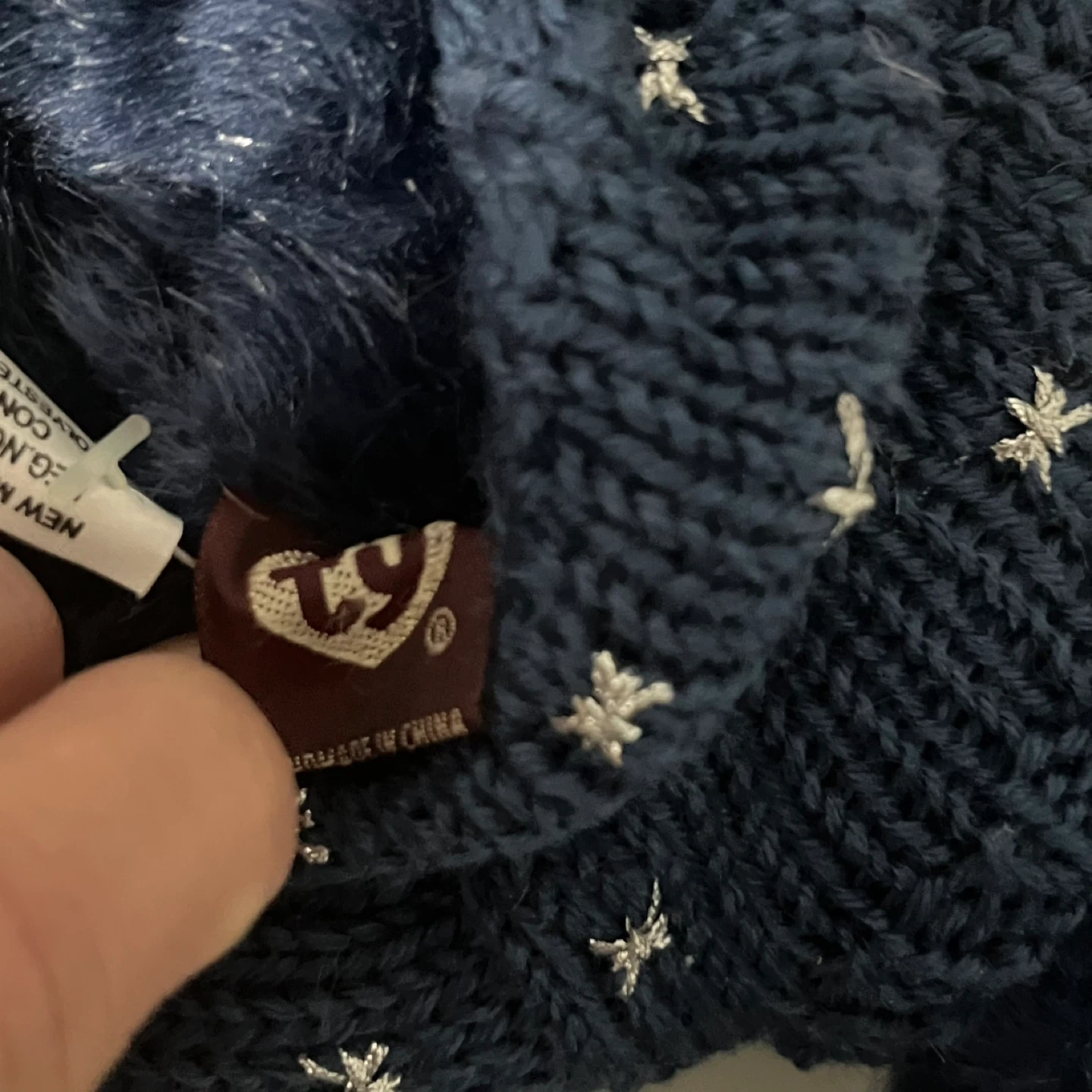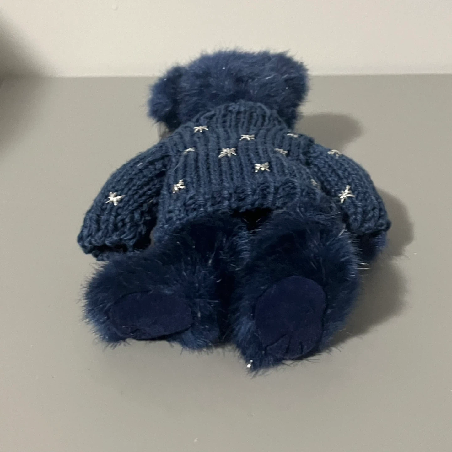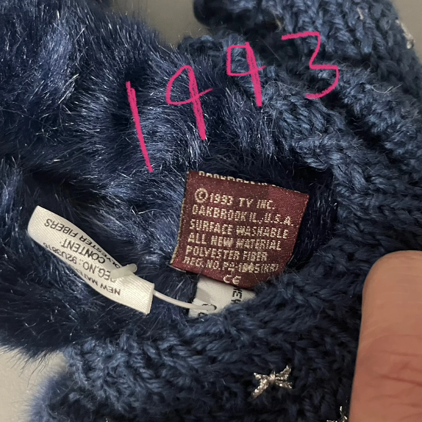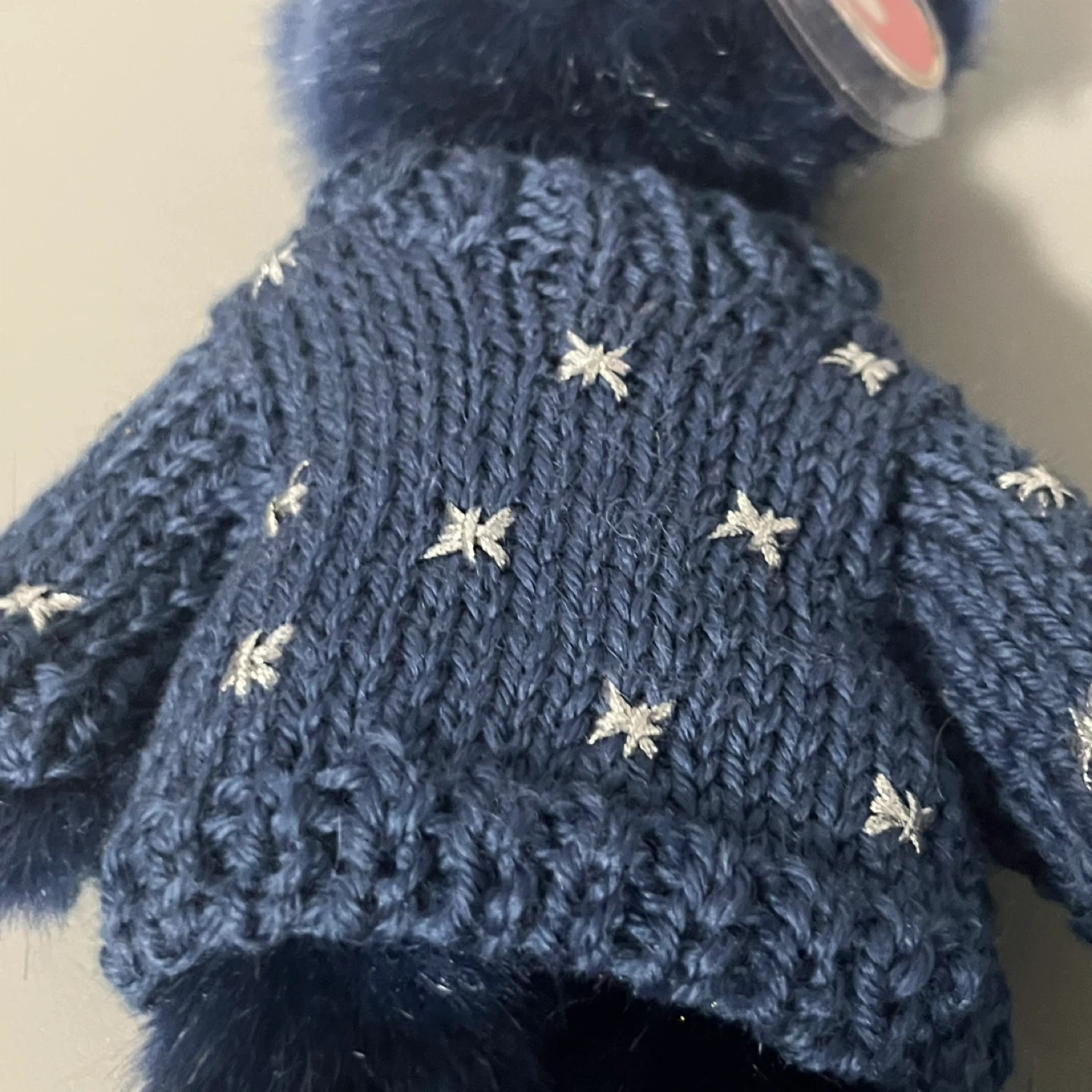 Selling a Ty Beanie Baby named Midnight the Bear! It's in great condition and comes with a cute blue sweater with stars on it. Perfect for collectors or as a gift for someone special