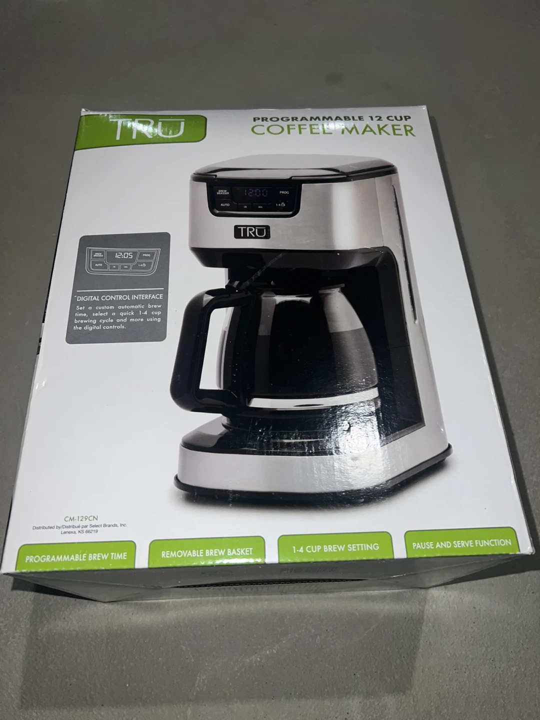 Selling a brand new TRU programmable 12-cup coffee maker, new and in its original box! It features a digital control interface for setting custom brew cycles, a removable brew basket, and a pause and serve function. You can also select a quick 1-4 cup brew setting. Enjoy freshly brewed coffee with ease! Retails for $35 + tax