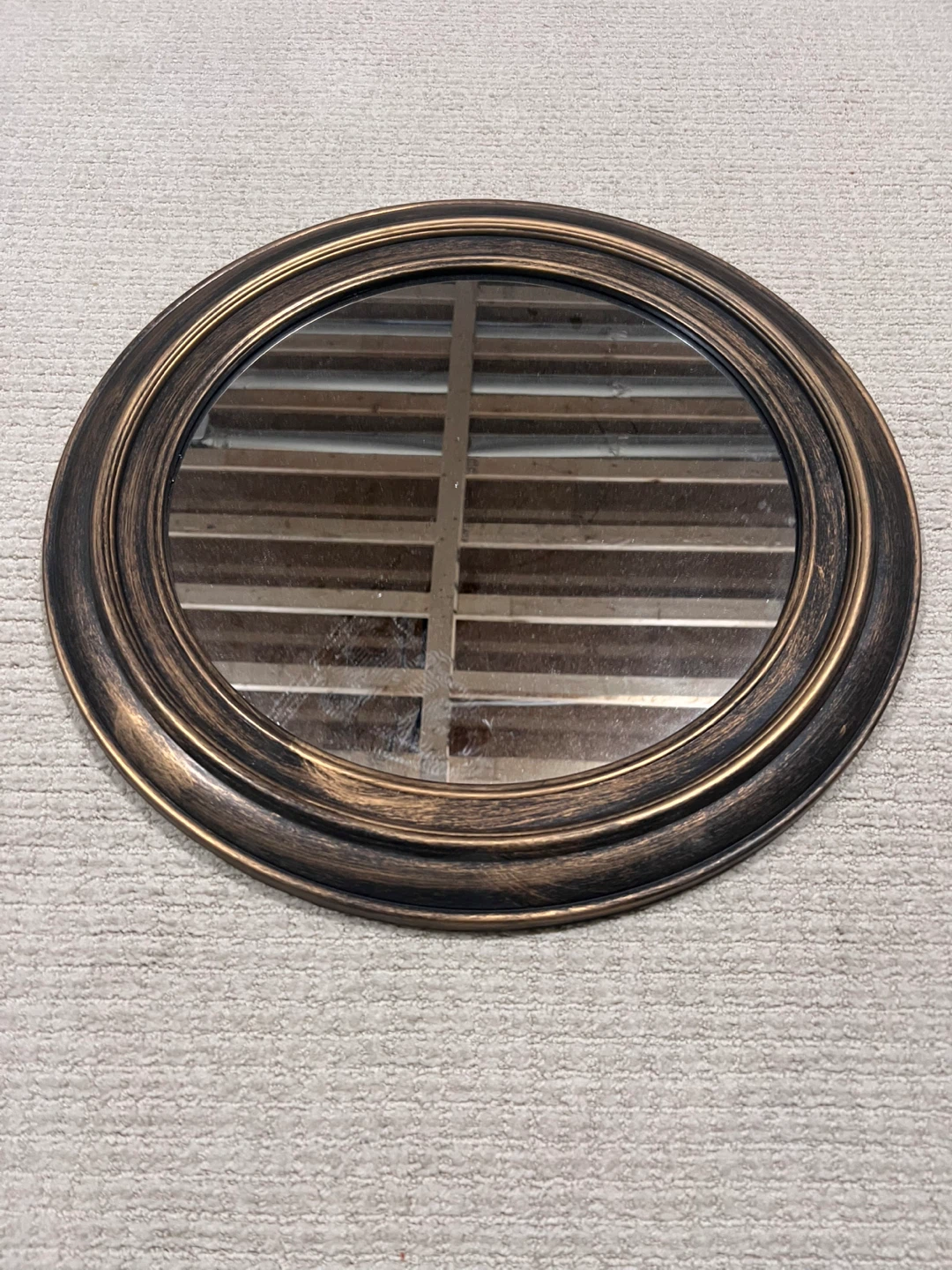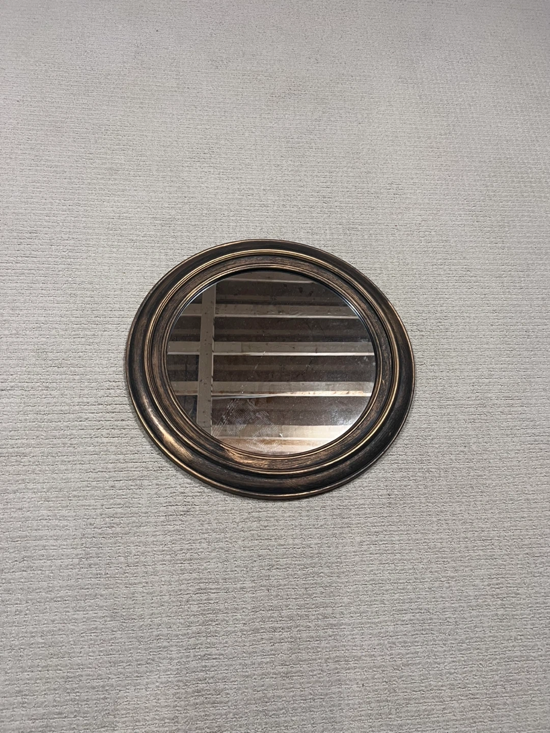 Selling a lovely circular mirror with a bronze-coloured frame! It's in great condition and would look fantastic in any room. Approximately 40cm in diameter