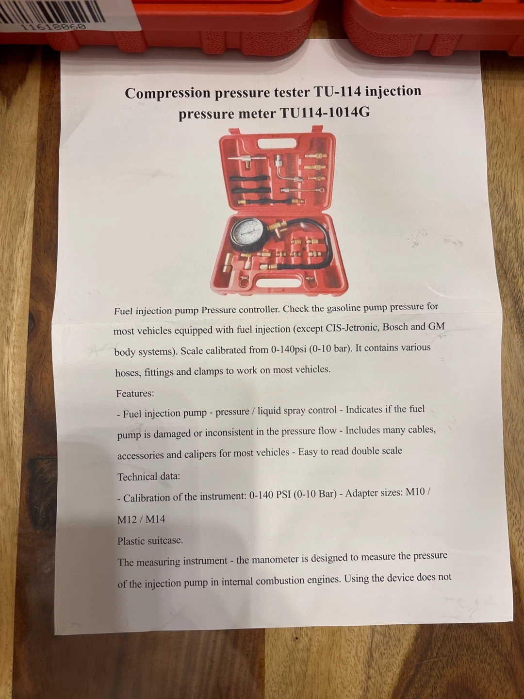 Selling a TU-114 injection pressure tester kit. It comes in a handy orange case and includes various hoses, fittings, and clamps suitable for most vehicles. The kit is calibrated from 0-140 PSI (0-10 bar) and includes adapters sizes M10 / M12 / M14. Perfect for checking gasoline pump pressure for fuel injection!