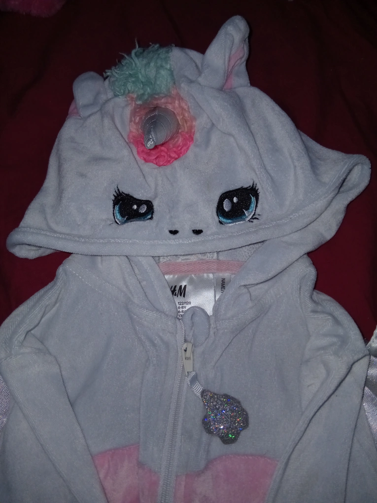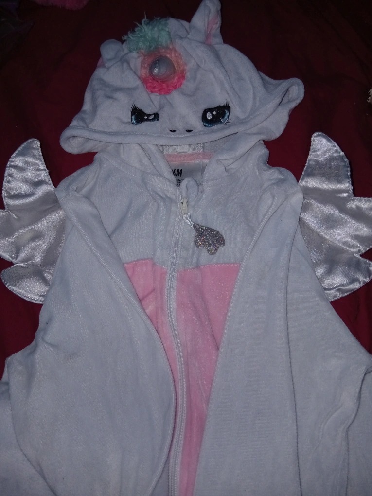 28Super cute H&M unicorn costume, perfect for dress-up or Halloween! Size 6-8Y. It features a hood with a unicorn horn and wings on the back