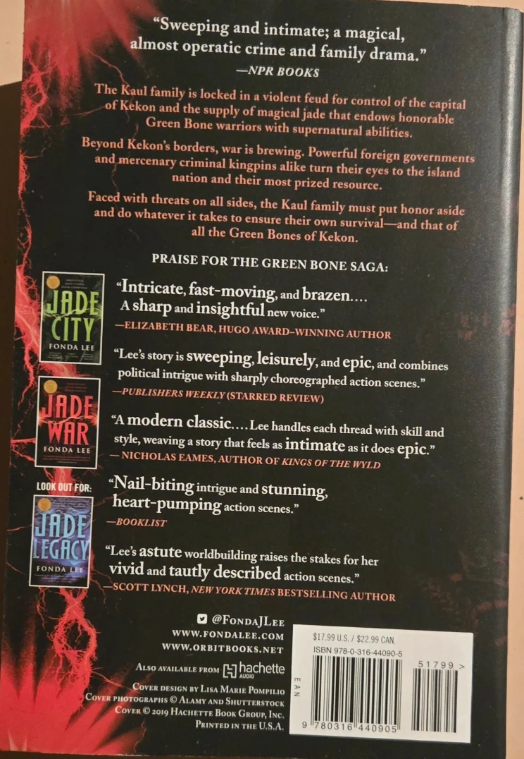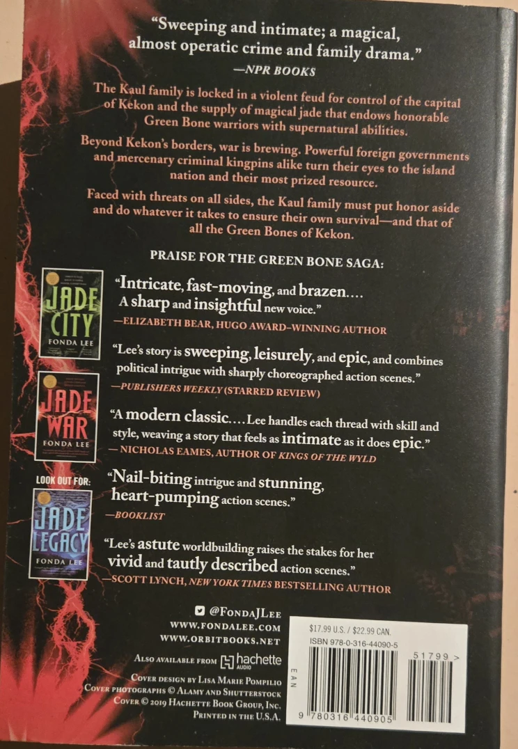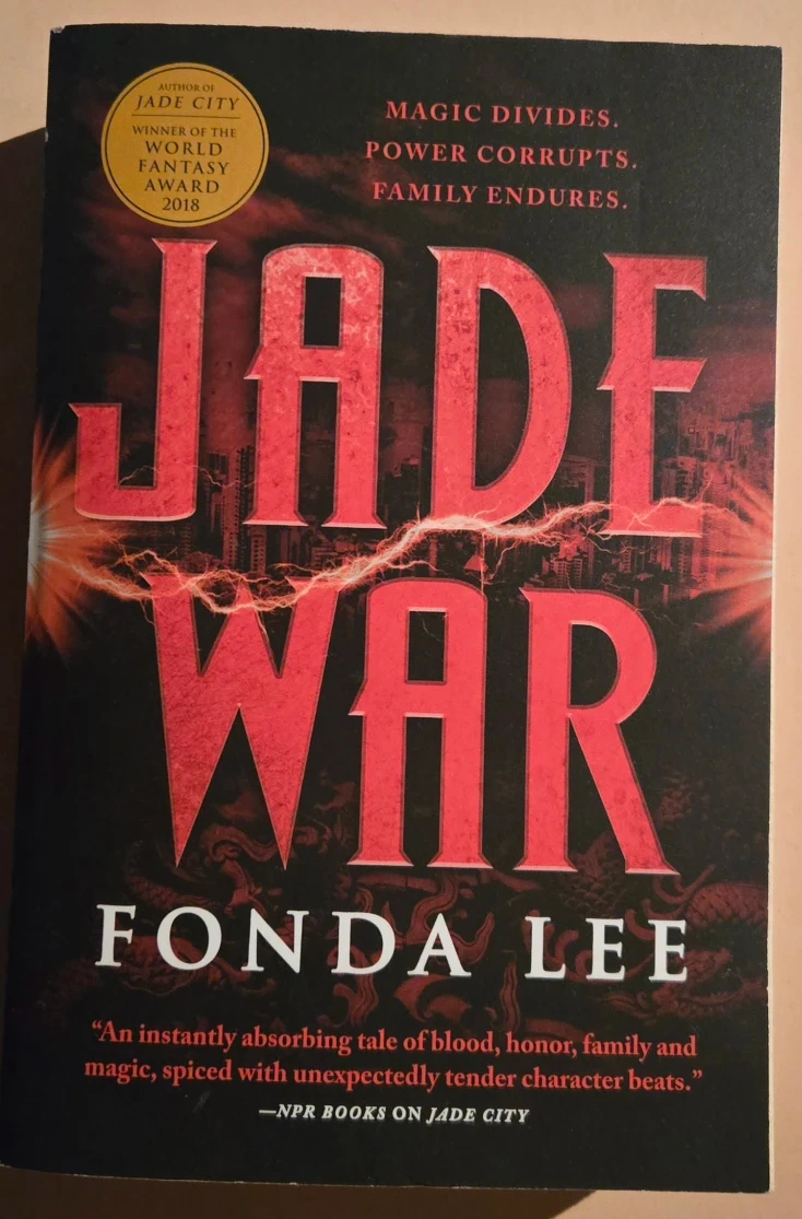Selling 'Jade War' by Fonda Lee! It’s the second book in the Green Bone Saga. A captivating read filled with magic, family drama, and political intrigue! Perfect for fans of fantasy and action.