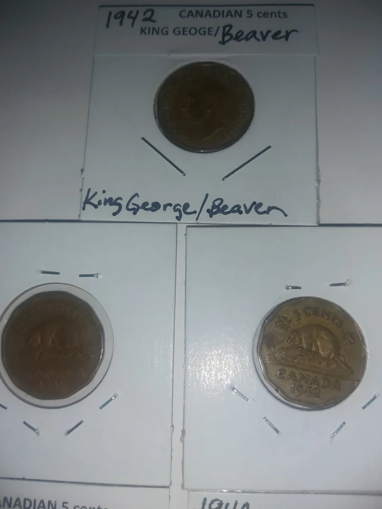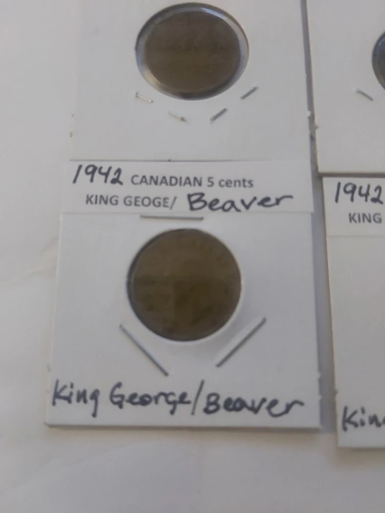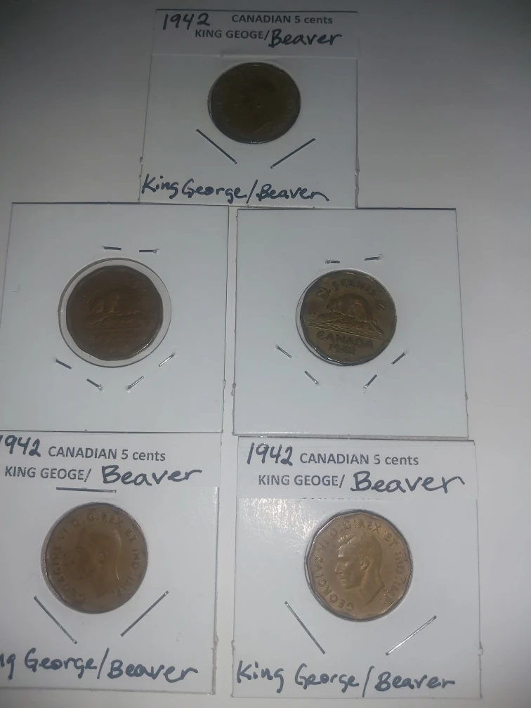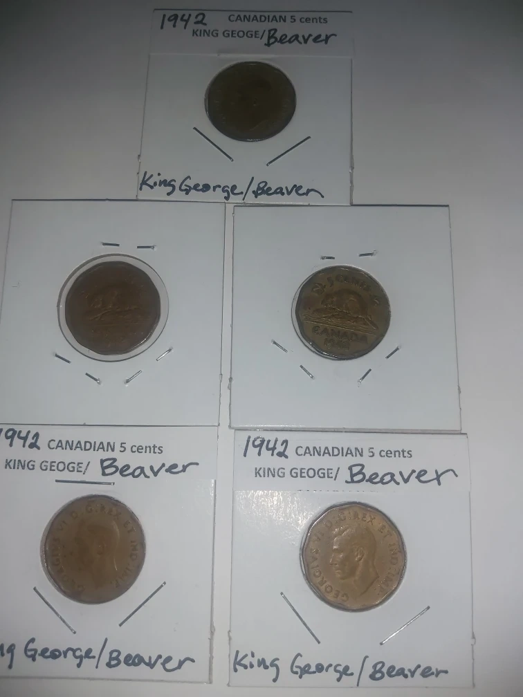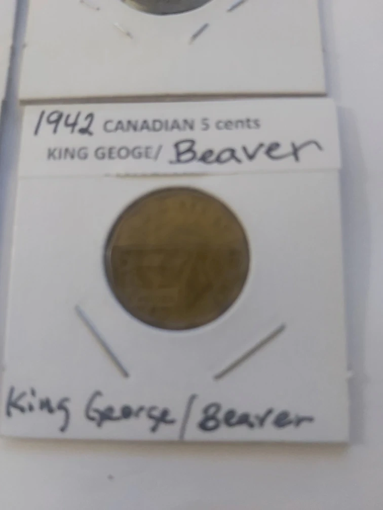 1942 Canadian 5 Cents Coin King George and Beaver on other side