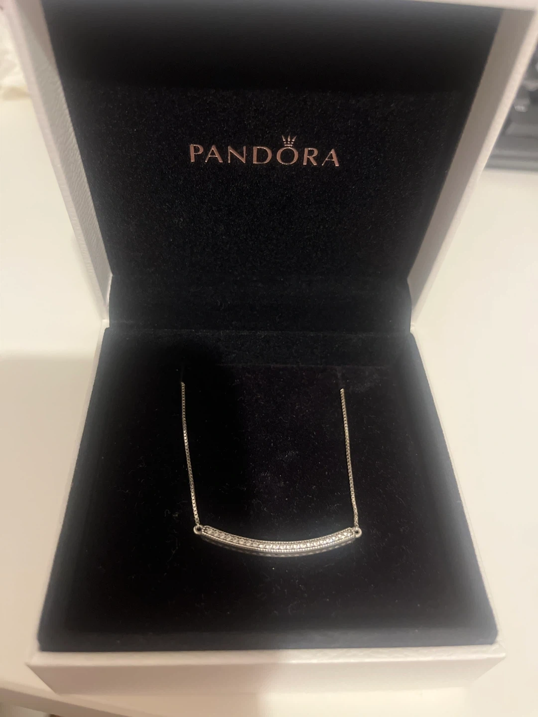 Selling a lovely Pandora Sparkling Curved Bar Necklace! It's in great condition and comes with its original box. A beautiful piece to add to your collection!