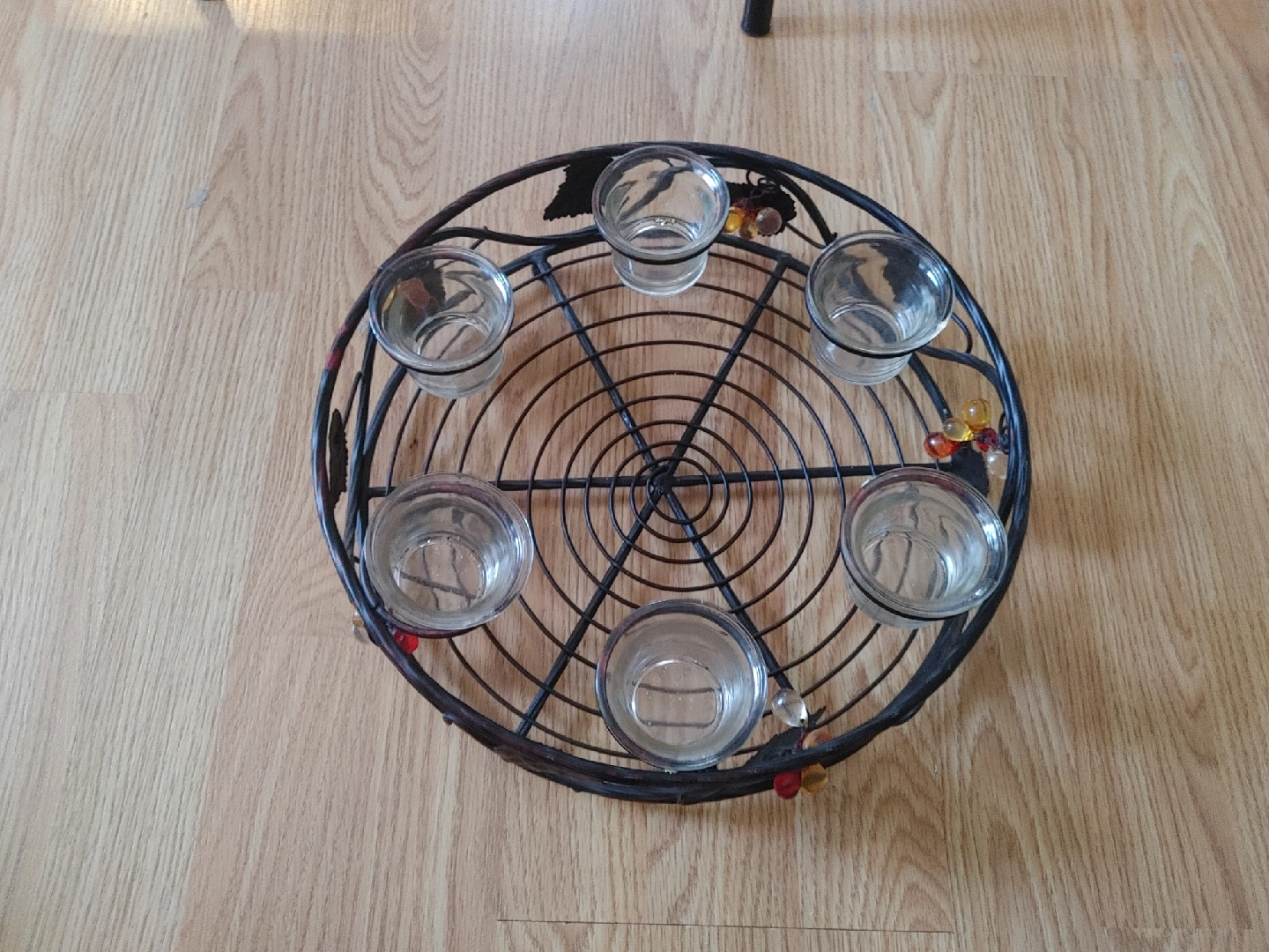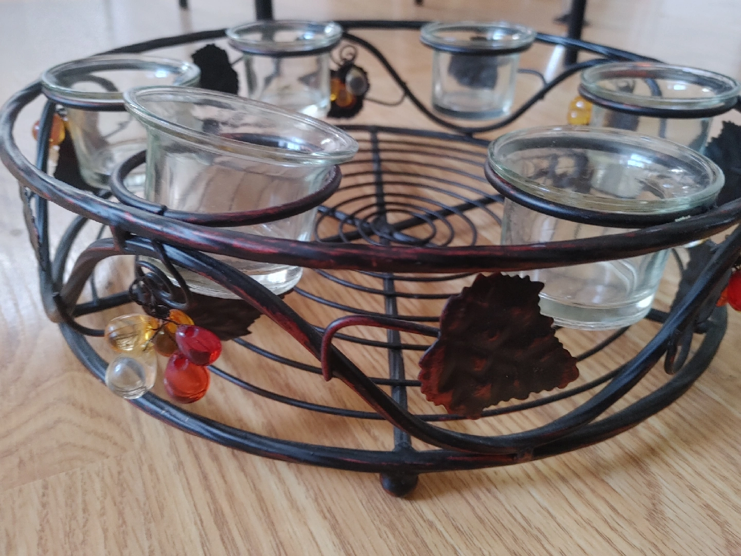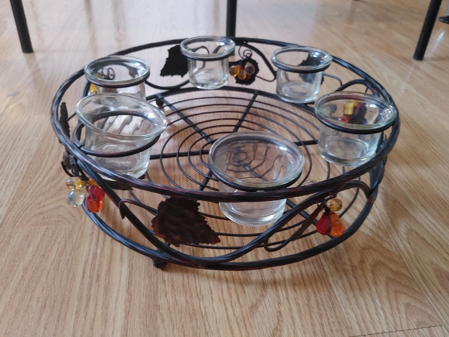 63Selling a candle holder with 7 glass cups. It's in great shape and ready to add some ambiance to your space