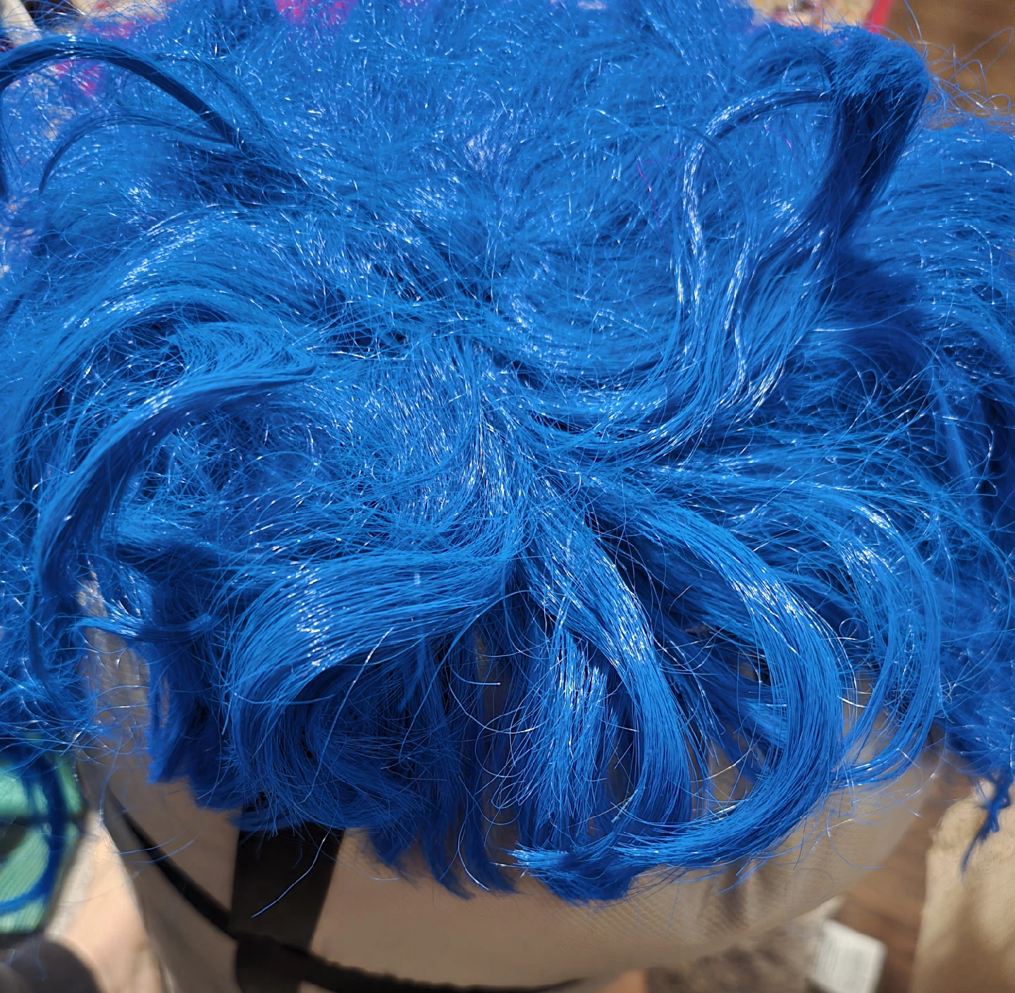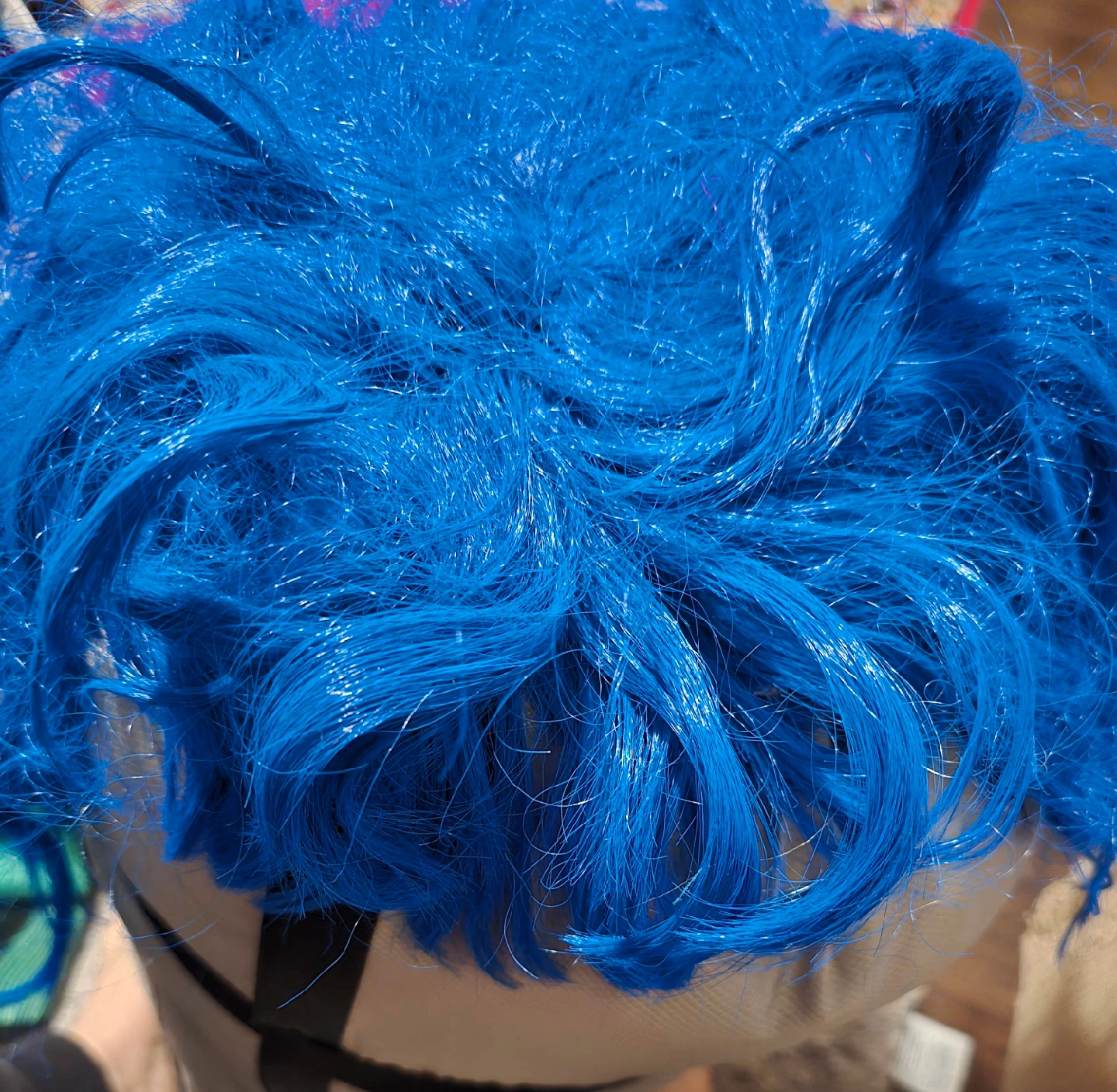 Here's a bright blue wig that's ready for a new home! It's in great condition and perfect for costumes, cosplay, or just adding a pop of colour to your look