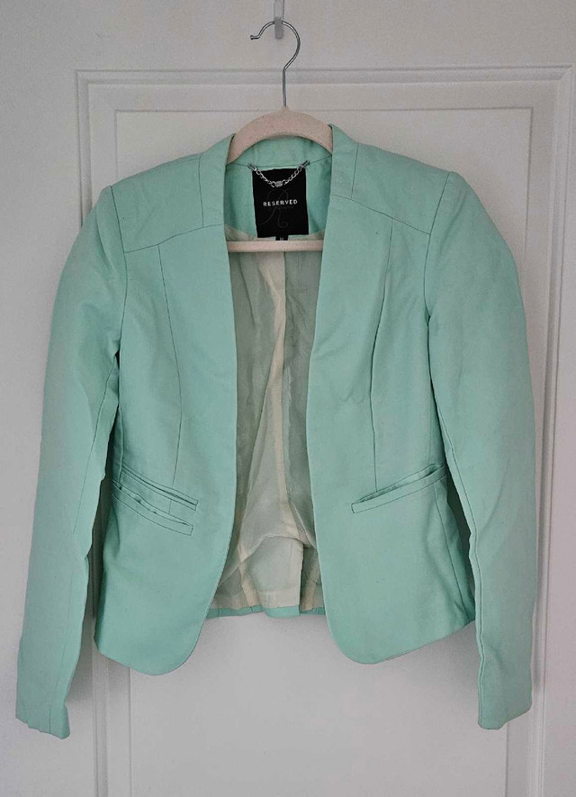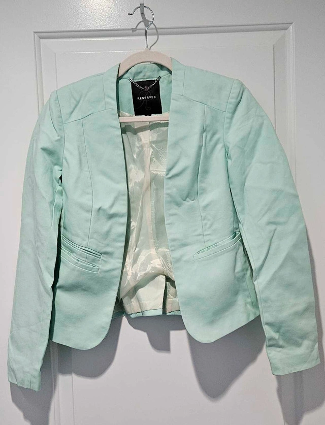 Beautiful aqua colored blazer, by Reserved brand. In fantastic condition - looks virtually new. Size is medium, but can also fit a small.