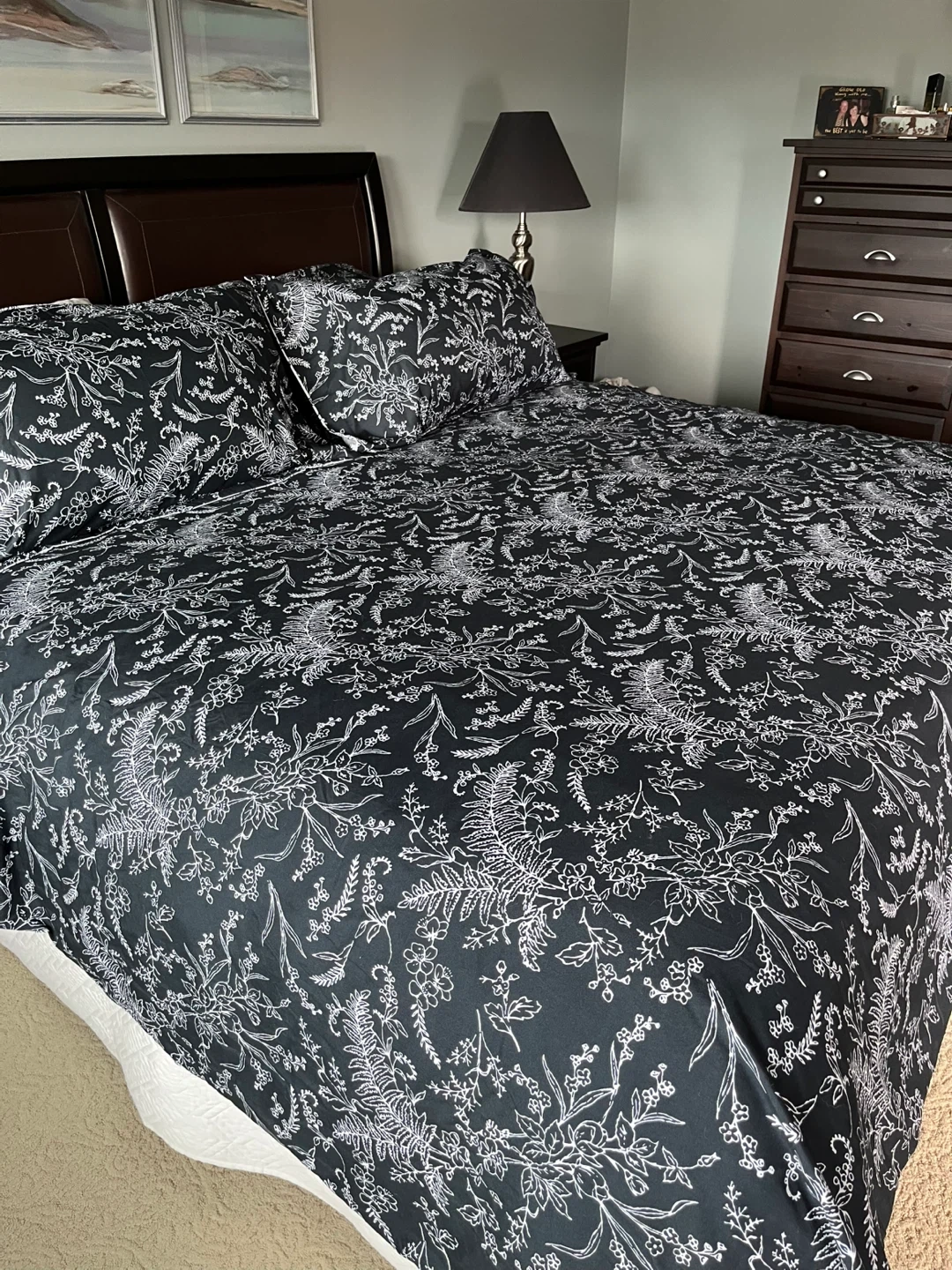 Selling a South Shore Fine Linens bedding set! It features a lovely floral pattern in black and white. This set would add a touch of elegance to any bedroom. Fabric is a 100% polyester.