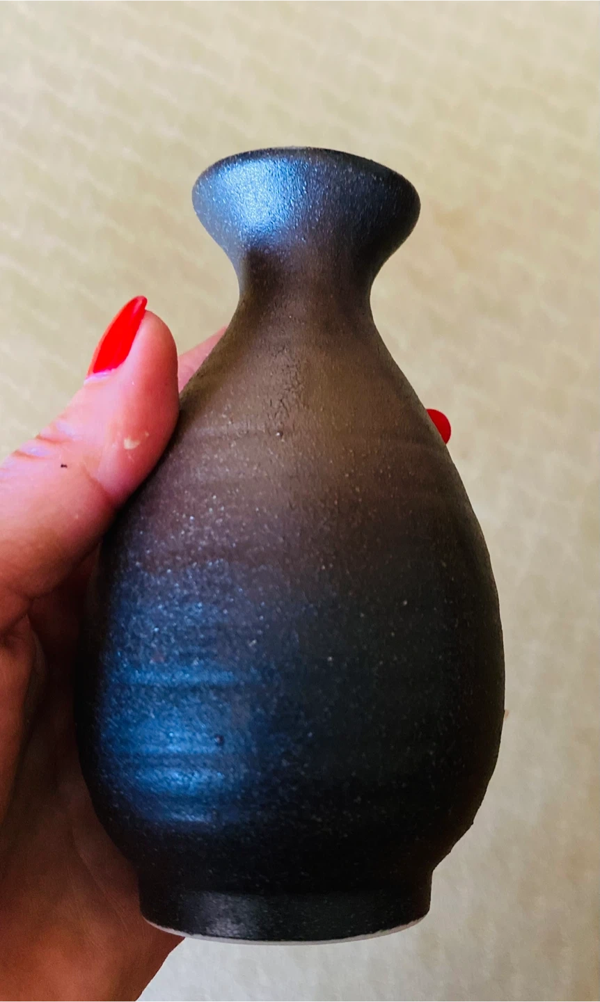 I'm selling a small dark brown ceramic vase. It is in good condition and would be perfect for holding a few flowers or as a decorative piece