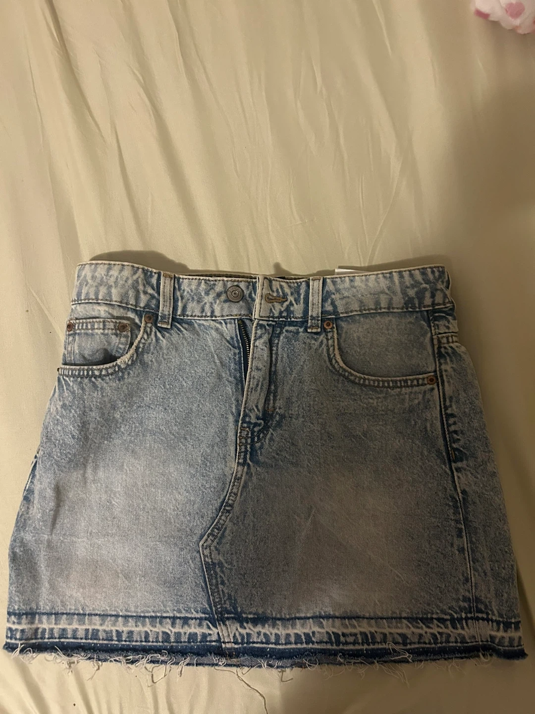 Selling a H&M denim mini skirt. It's in great condition and ready for a new home! It's a light wash denim, perfect for casual wear.