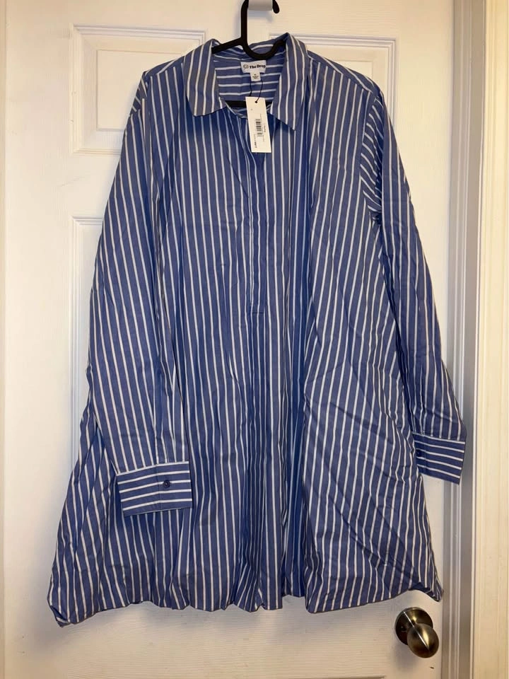 484Brand new The Drop Women's Bubble Hem Shirtdress. Size-XL. Fabric - 97% Cotton, 3% Spandex.