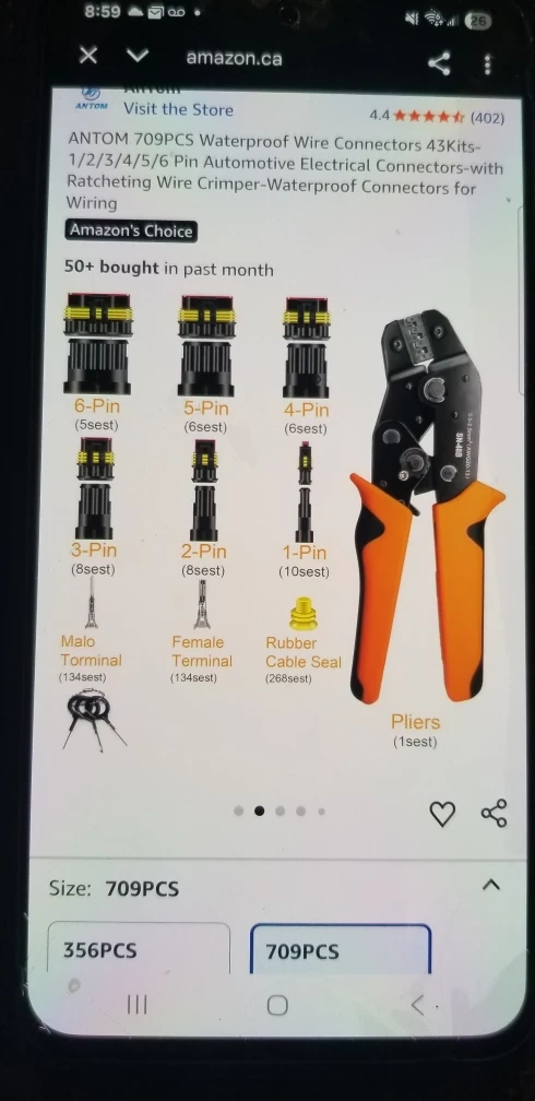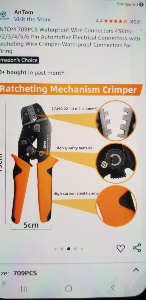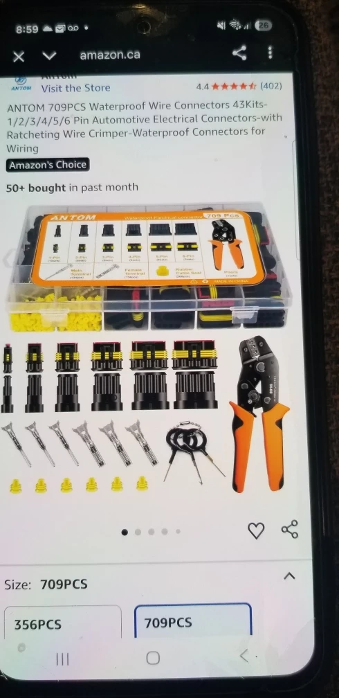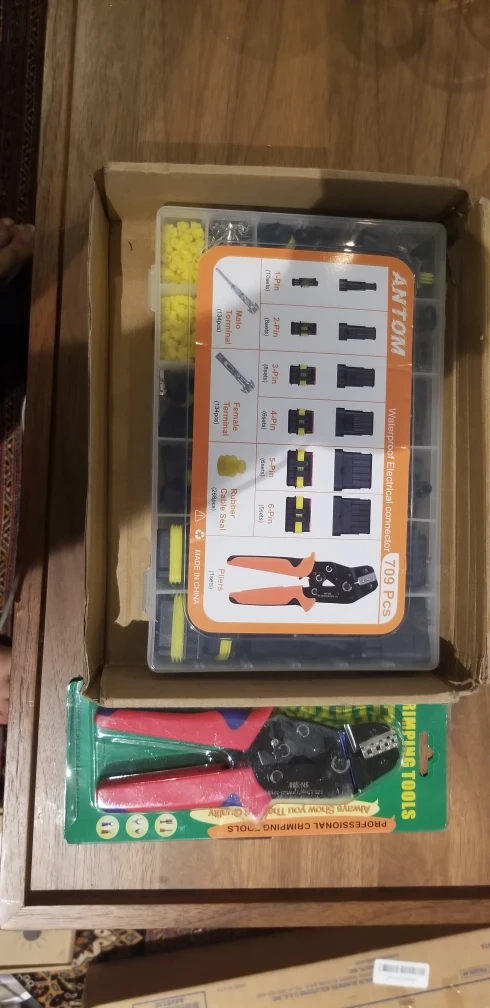 Selling a set of ANTOM waterproof wire connectors. The set includes 709 pieces of automotive electrical connectors with a ratcheting wire crimper. Great for wiring projects!