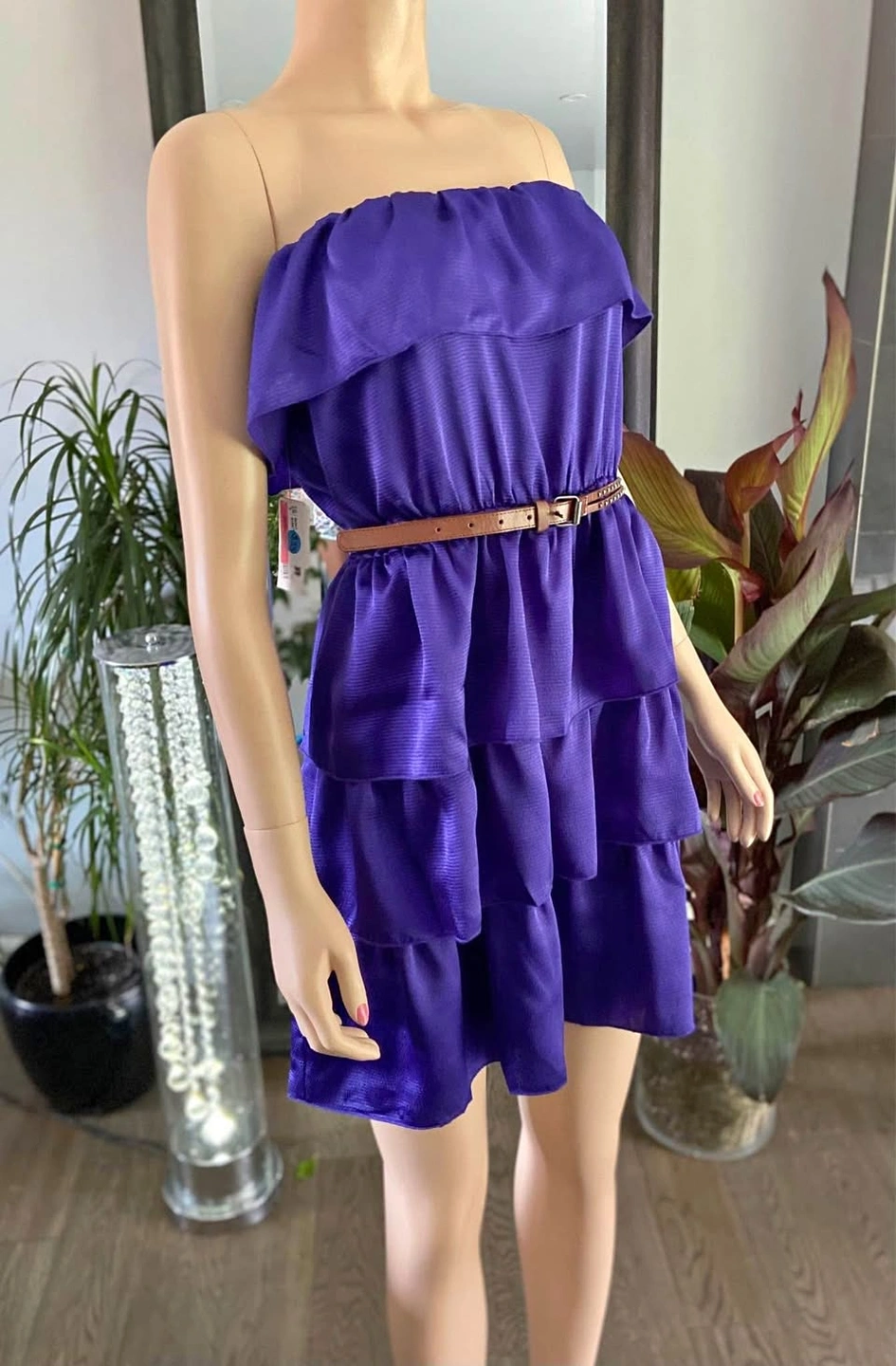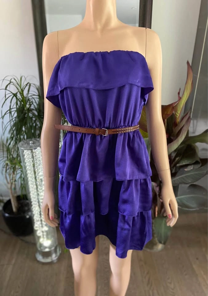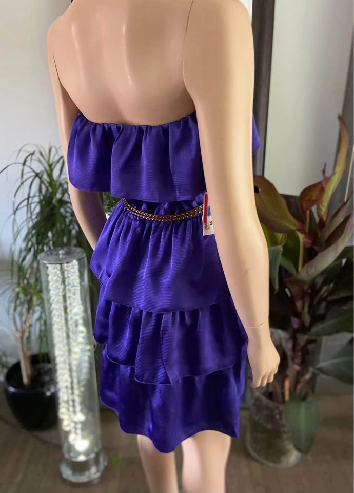 NWT: Laundry Violet Purple Satin Textured Ruffled Tiered Strapless Cocktail Dress Sizes S & XL