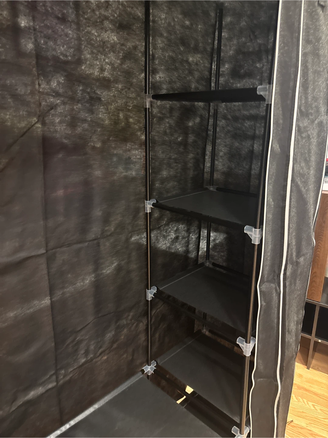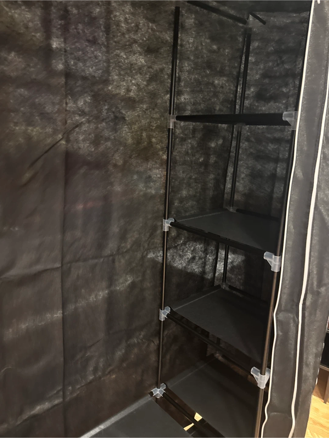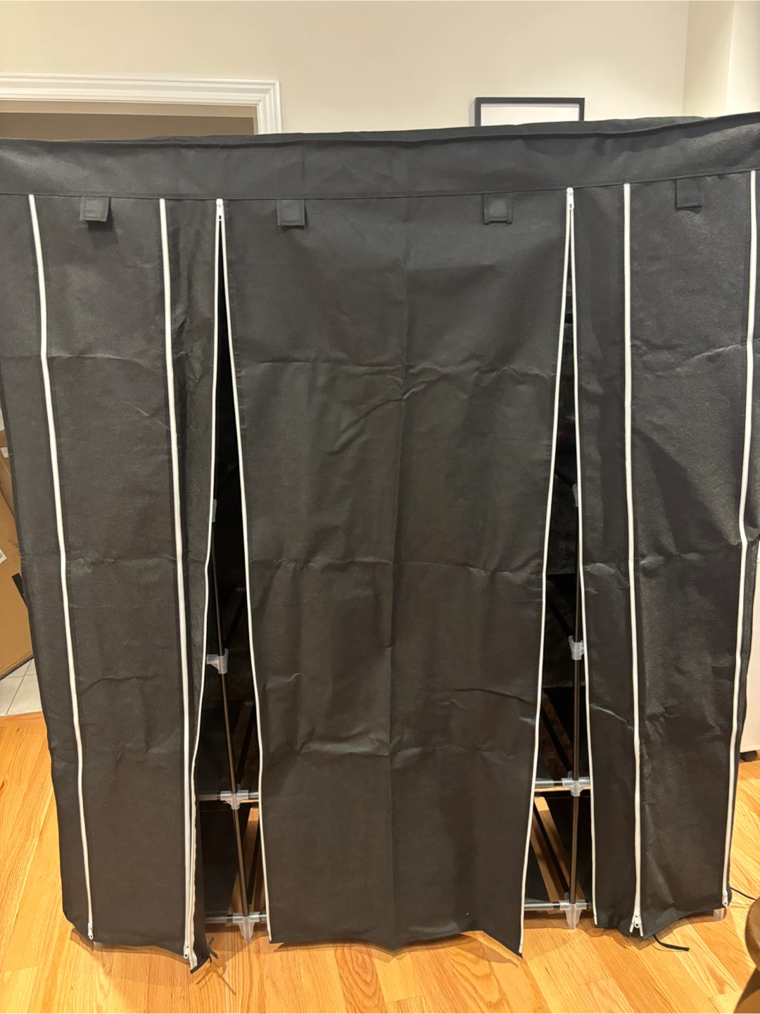 Selling a Black portable closet wardrobe. It's in great shape and ready to help organize your space. The dimensions are approximately 59" x 17.7" x 69". Available for pickup and delivery.