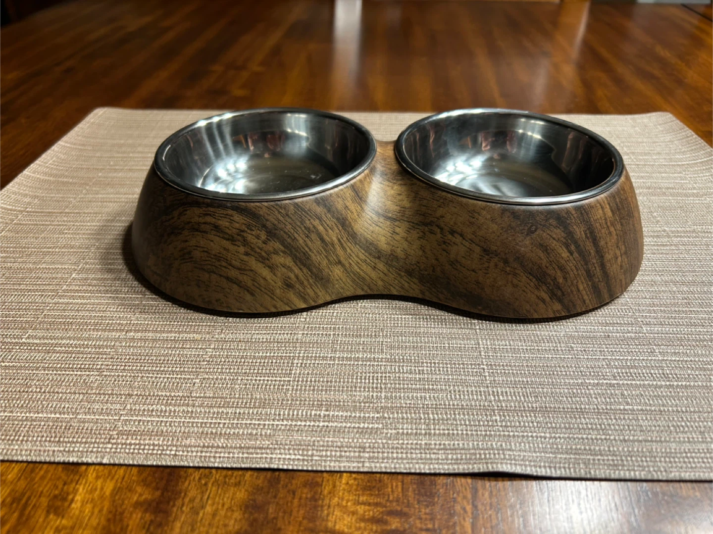 Like New! Elevated Pet Bowls — Woodgrain Decal — Size XS