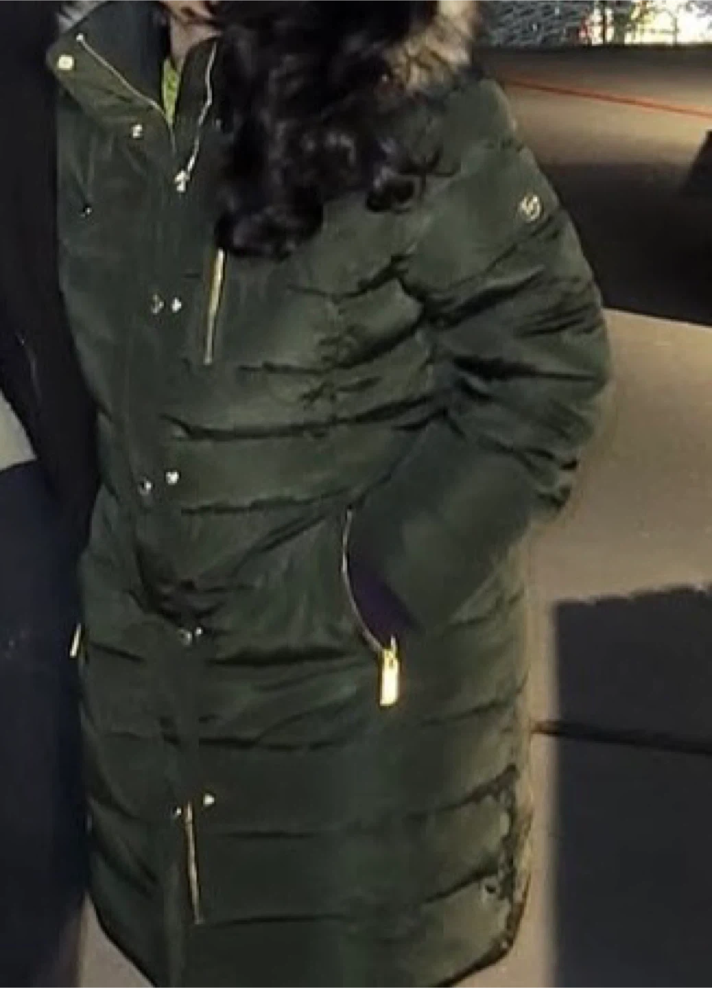 Selling a Michael Kors puffer coat in olive green. In good condition and has gold zippers.