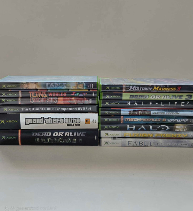 Excellent condition Halo companion DVD set and 13 games: Fable limited edition bonus dvd Tetris worlds Crimson skies high road to revenge Grand theft auto double pack Dead or Alive ultimate Midtown Madness 3 Dead or alive 3 Half life 2 Jade empire limited edition Mechassault 2 lone wolf Halo Fuzion frenzy Fable the lost chapters Pickup in Mississauga