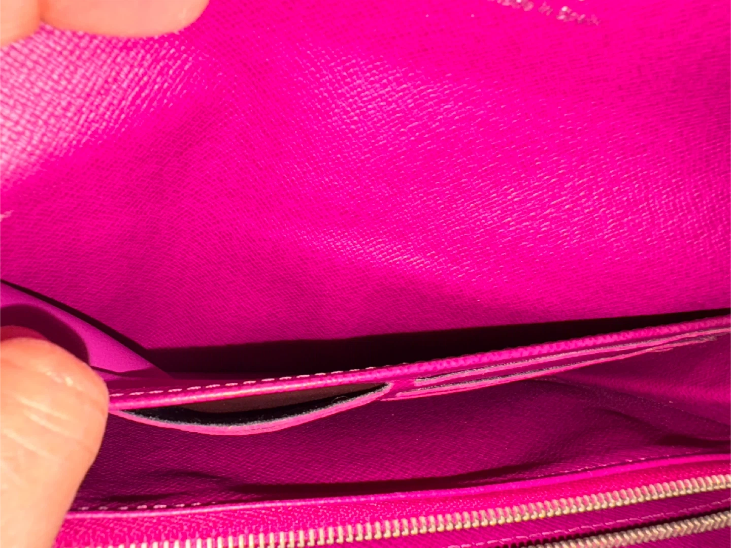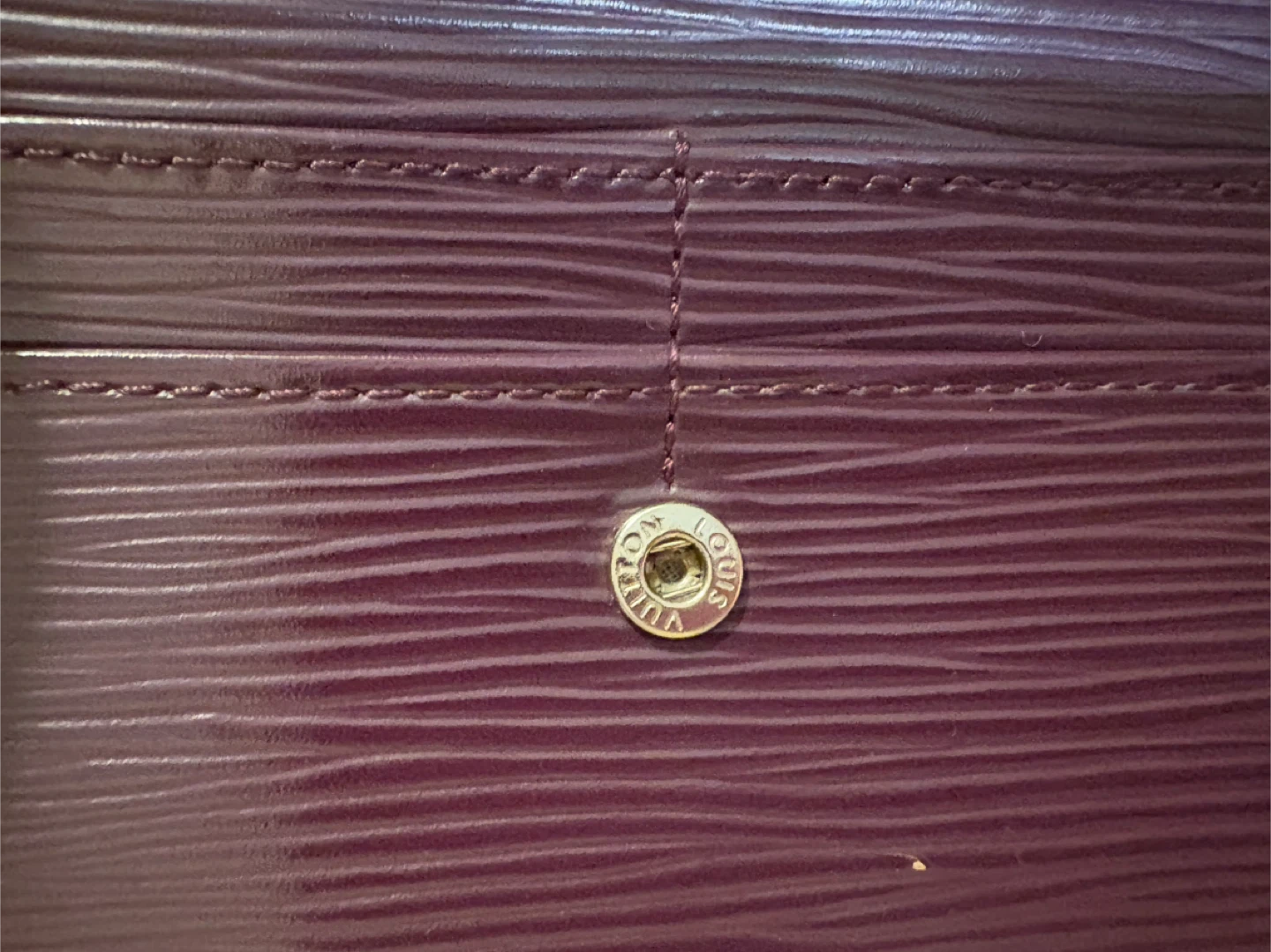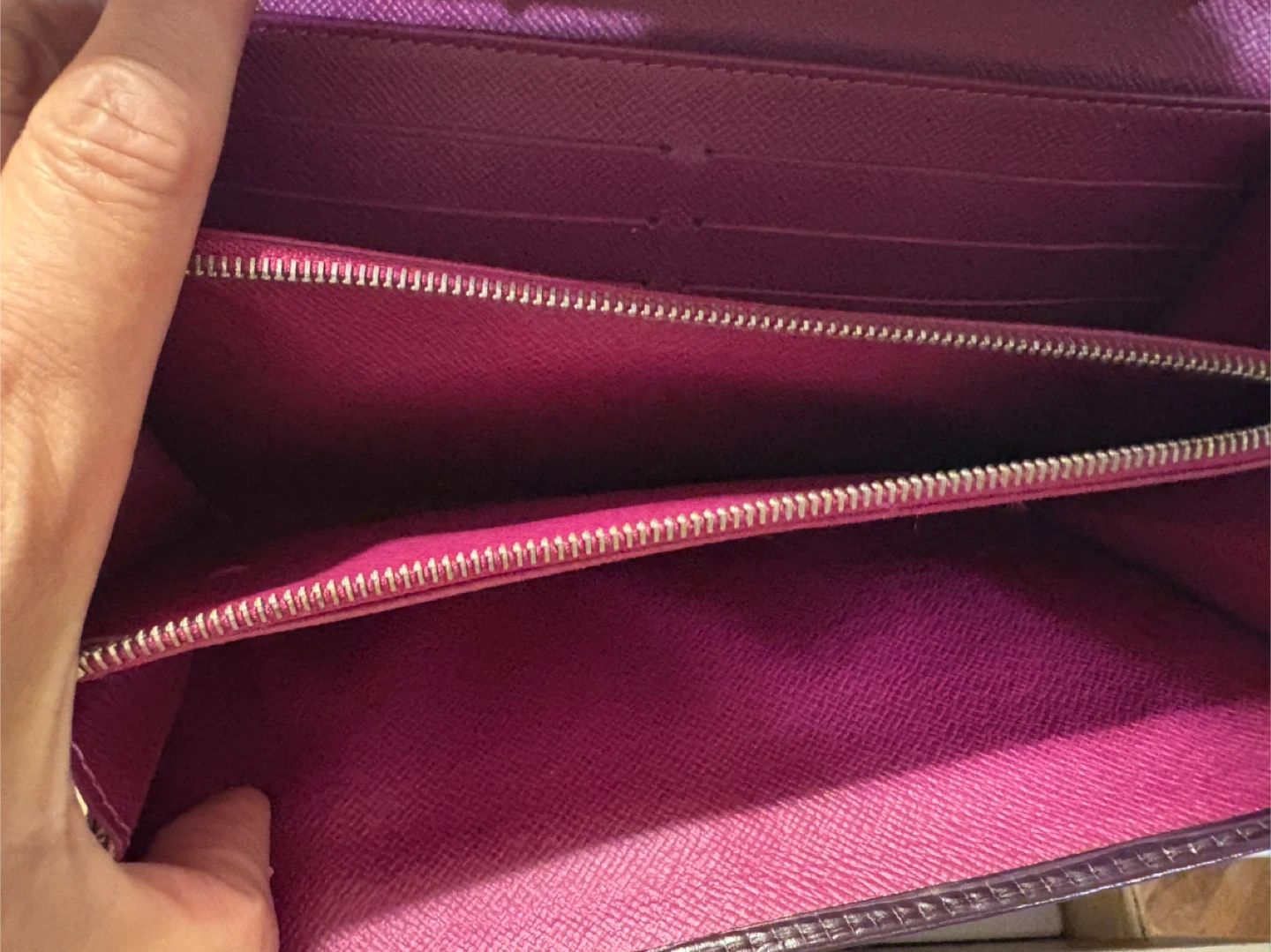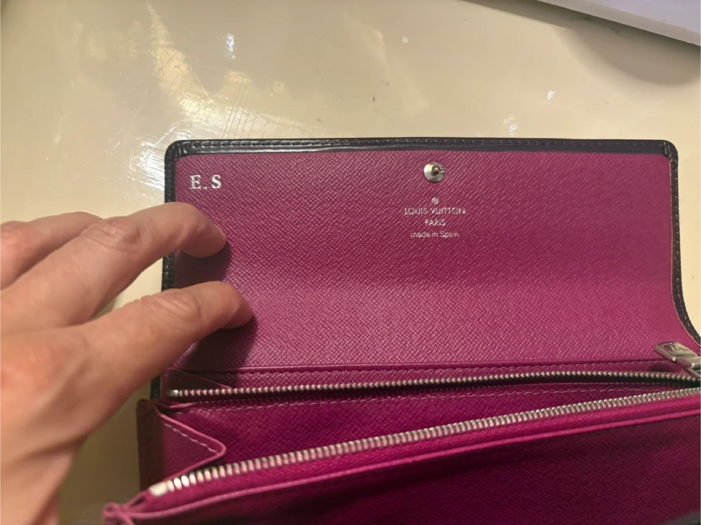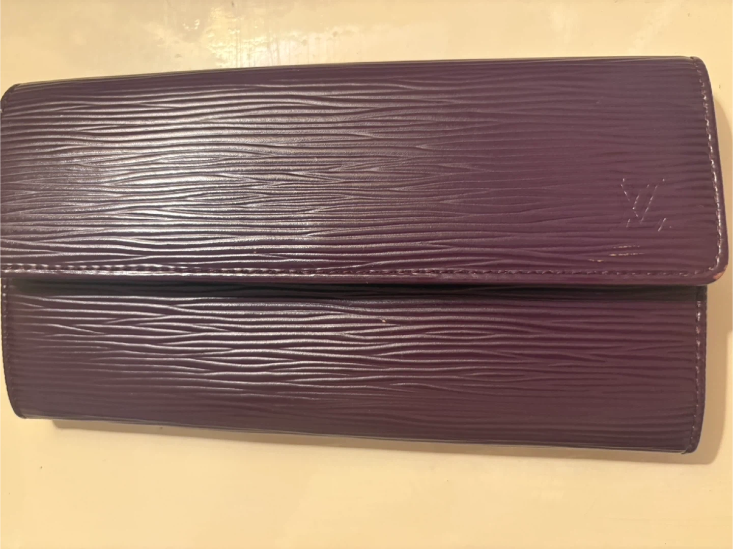 Selling a Louis Vuitton wallet in a beautiful purple leather. Slight signs of wear in the corners , good condition and ready for a new home. This stylish wallet is perfect for keeping your essentials organized!
