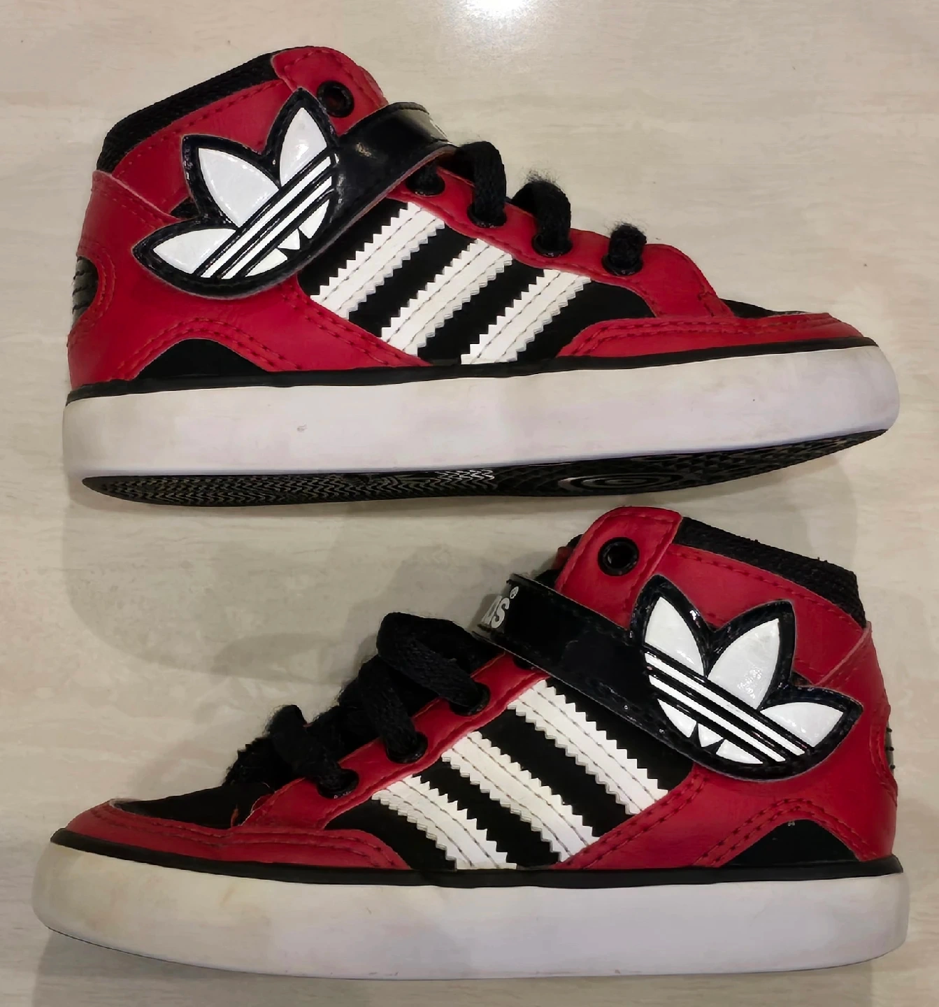 Adidas Kids Red & Black High-Top Sneakers! Size 7